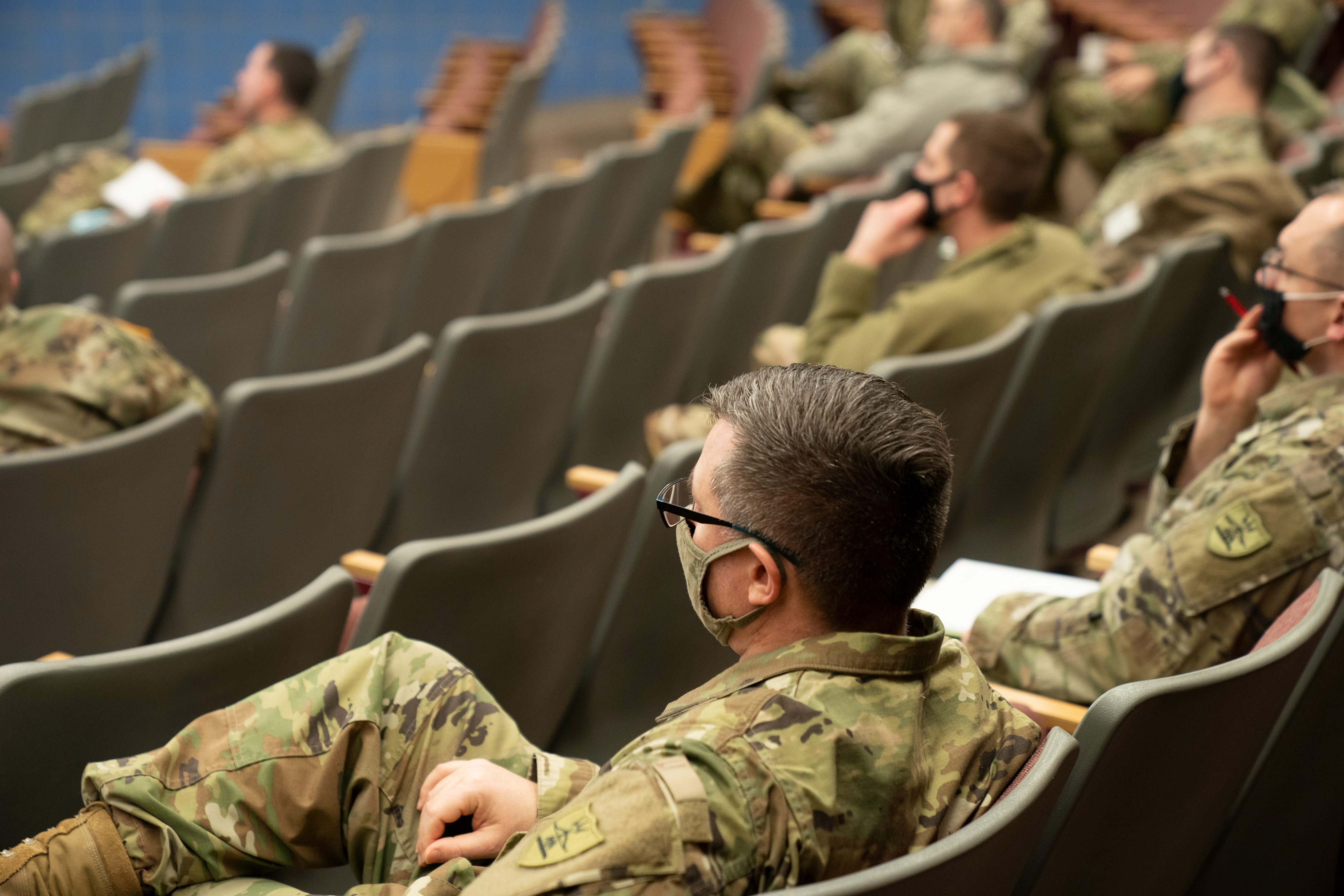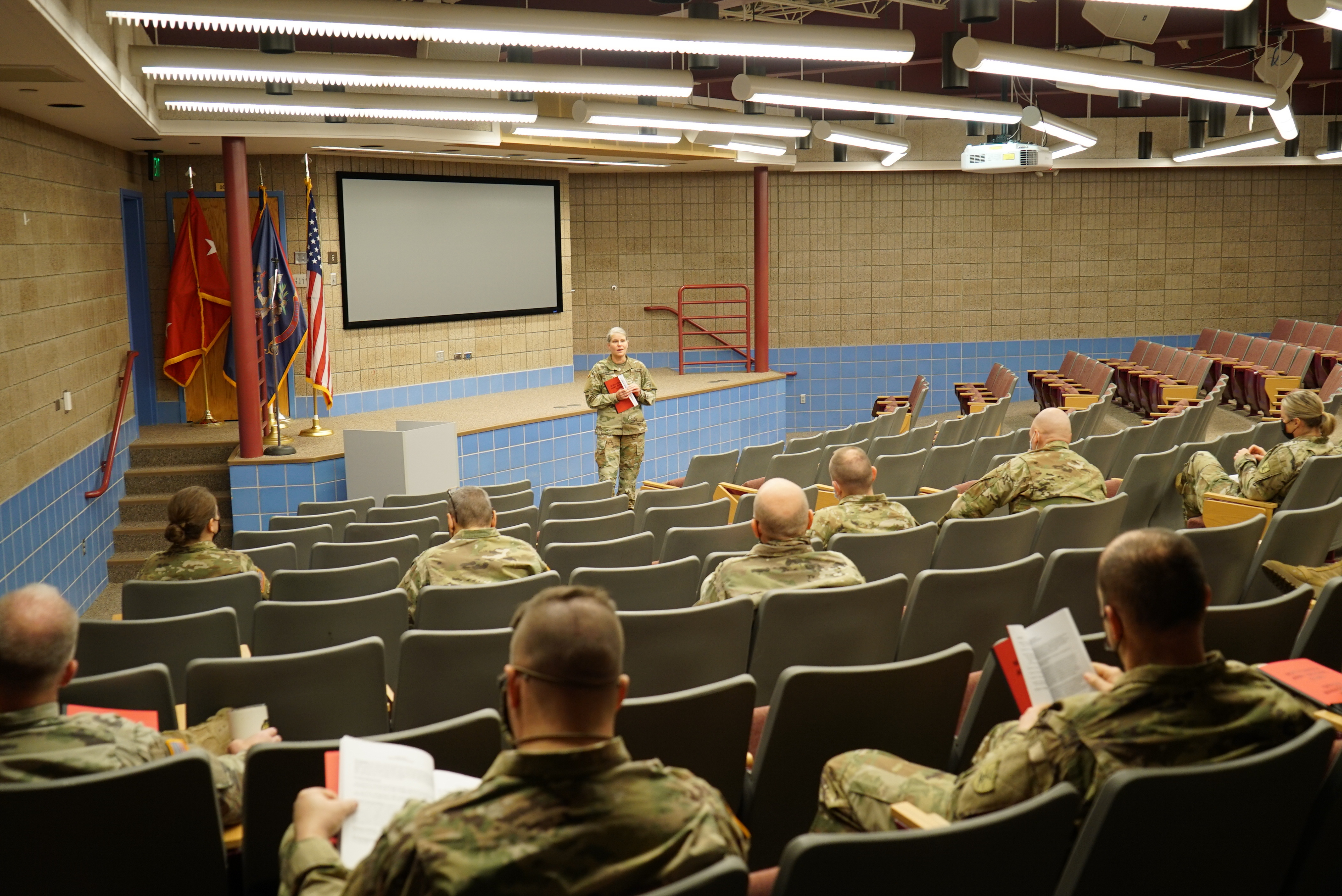 Chief Warrant Officer 3 Deitra Harr, Personal Management Branch Chief, conducted a professional development class for N.D. Guard officers and warrant officers at Raymond J. Bohn armory, Feb. 11, 2022. (National Guard story and photos by Sgt. 1st Class Charles Highland, N.D. National Guard Public Affairs Office)