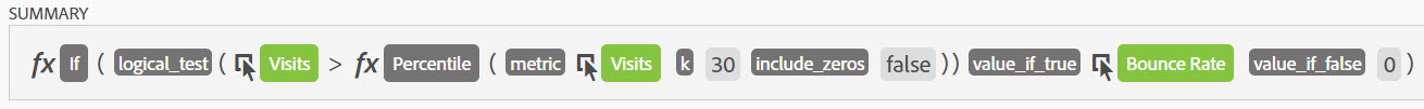 Improved sorting using If, Percentile and Greater Than - 'If' statements allow you to set a floor and/or ceiling for any given metric. This is helpful for reports where you want to sort on metrics such as bounce rate & conversion rate, but don't want to see low volume dimensions. Percentile in this function ensures the floor is relative to actual behavior, rather than just an arbitrary threshold that you've set.