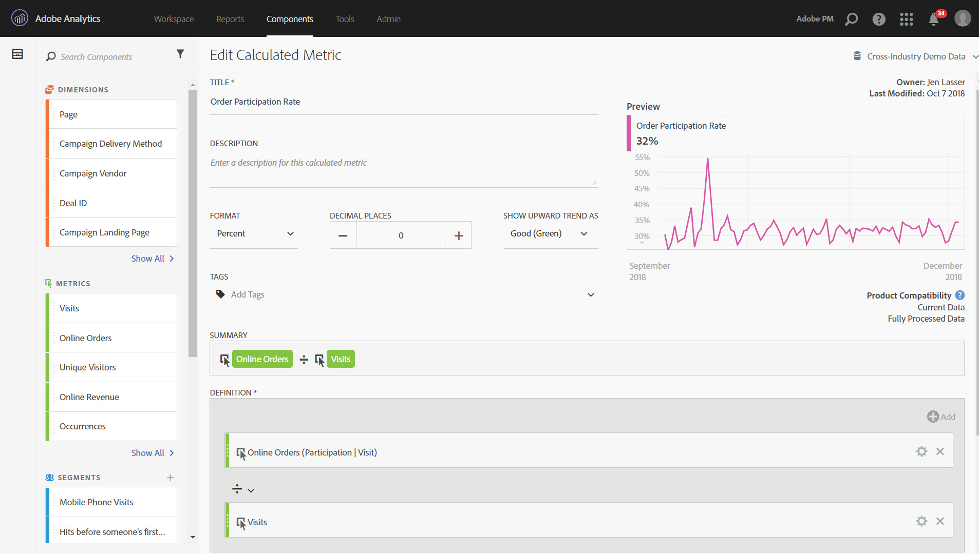 - Unshare & Delete - Ensure your list doesn't become cluttered by pruning your metric list every so often. Adobe is also making strides toward helping you better understand where a calculated metric is being used & when it was last used, so you can have confidence that you aren't deleting something in use. But have no fear - even if you delete a calculated metric in use, we soft-delete it so that your reporting won't break.