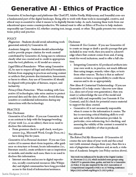 This resource, Classroom Policies for Generative AI Tools, is created / curated by Lance Eaton for the purposes of sharing and helping other instructors see the range of policies available. It is an open resource meant to help other educators in the development of their own policies and practices for navigating AI-Generative Tools (such as ChatGPT, MidJourney, Dall-E, etc).