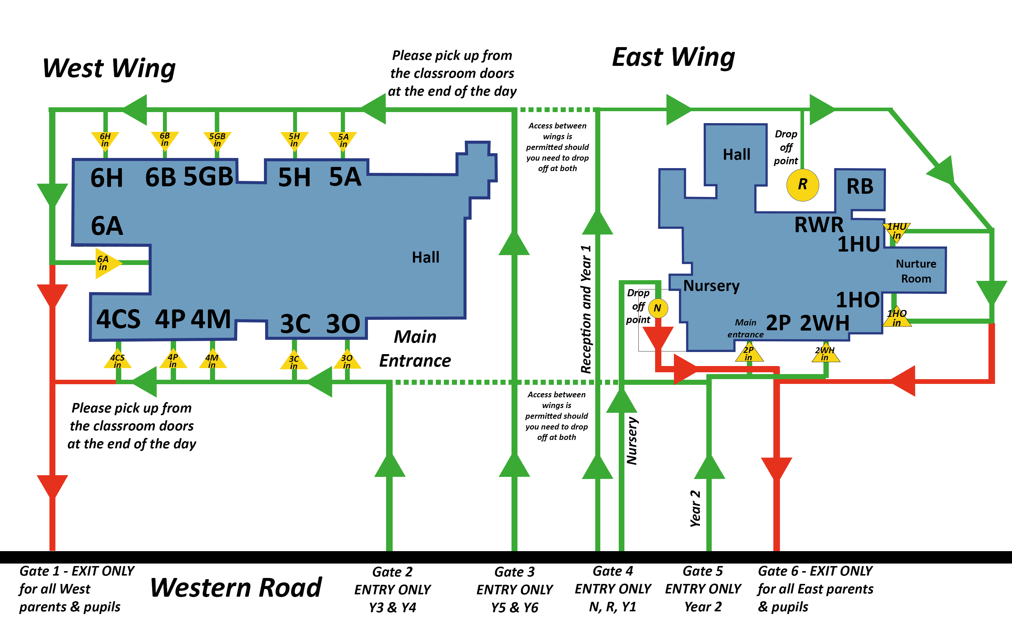 Please also take a look at the map for reminder of the new class locations and routes in and out of school.