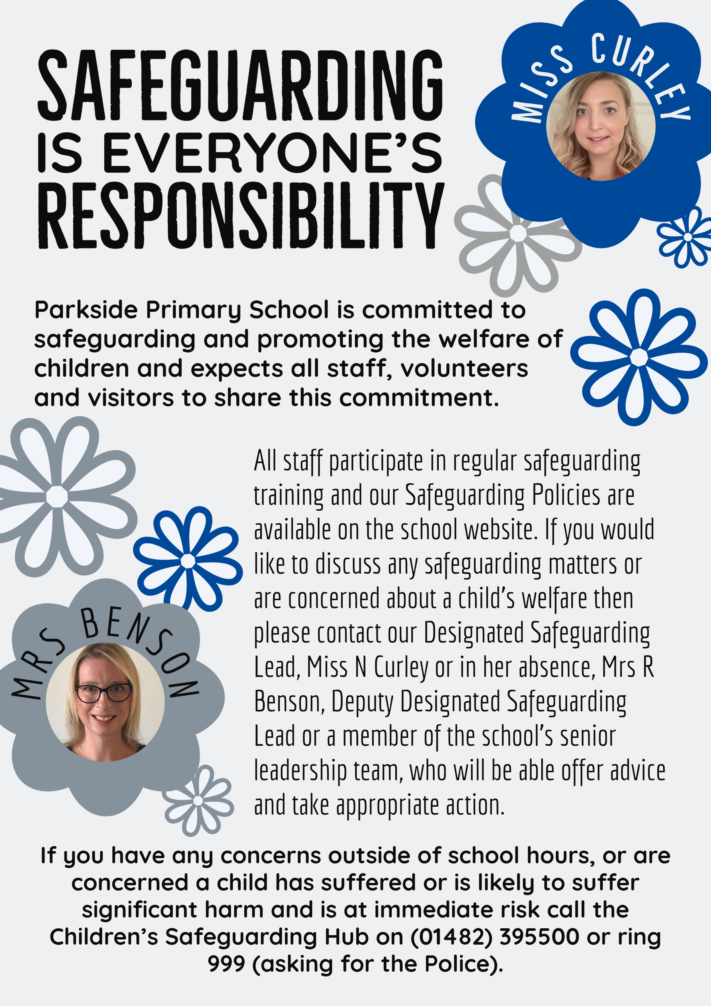 Please can we remind you that any concerns outside of school hours, or are concerns a child has suffered or is likely to suffer significant harm should be shared immediately with Children’s Safeguarding Hub on (01482) 395500 or ring 999 (asking for the Police).
