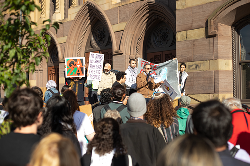 Pro-Palestine protesters rally in front of City Hall On Indigenous People’s Day, the pro-Palestine protest related their struggle to a global movement against colonialism; the rally was held days after a surprise attack against Israel by Hamas and met by a smaller counter-protest. Words by Maggie Grether, Laura Ospina and Yurii Stasiuk. Photos by Maggie Grether and Kate Estevez.