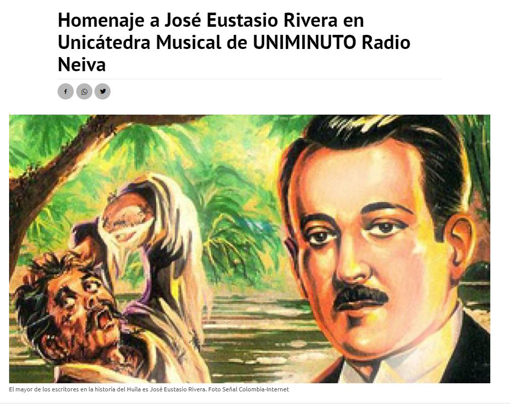 “Poco a poco el escritor decayó en un grave estado que, tras cuatro días en coma, llevó a la muerte a José Eustasio Rivera, el 1 de diciembre de 1928”. Así recogen varios textos el fallecimiento del más grande escritor del Huila y por ello el Programa Unicátedra Musical de UNIMINUTO Radio Neiva hace un homenaje especial al autor de La Vorágine, al conmemorarse 90 años de este episodio. A fines de abril de 1928 llegó Rivera a Nueva York. Contaba 40 años y ya era conocido como poeta y novelista de prestigio, político y diplomático a nivel internacional.