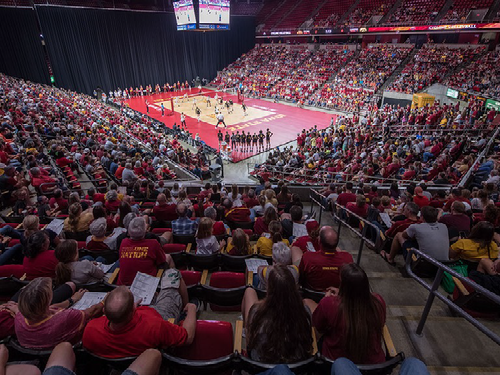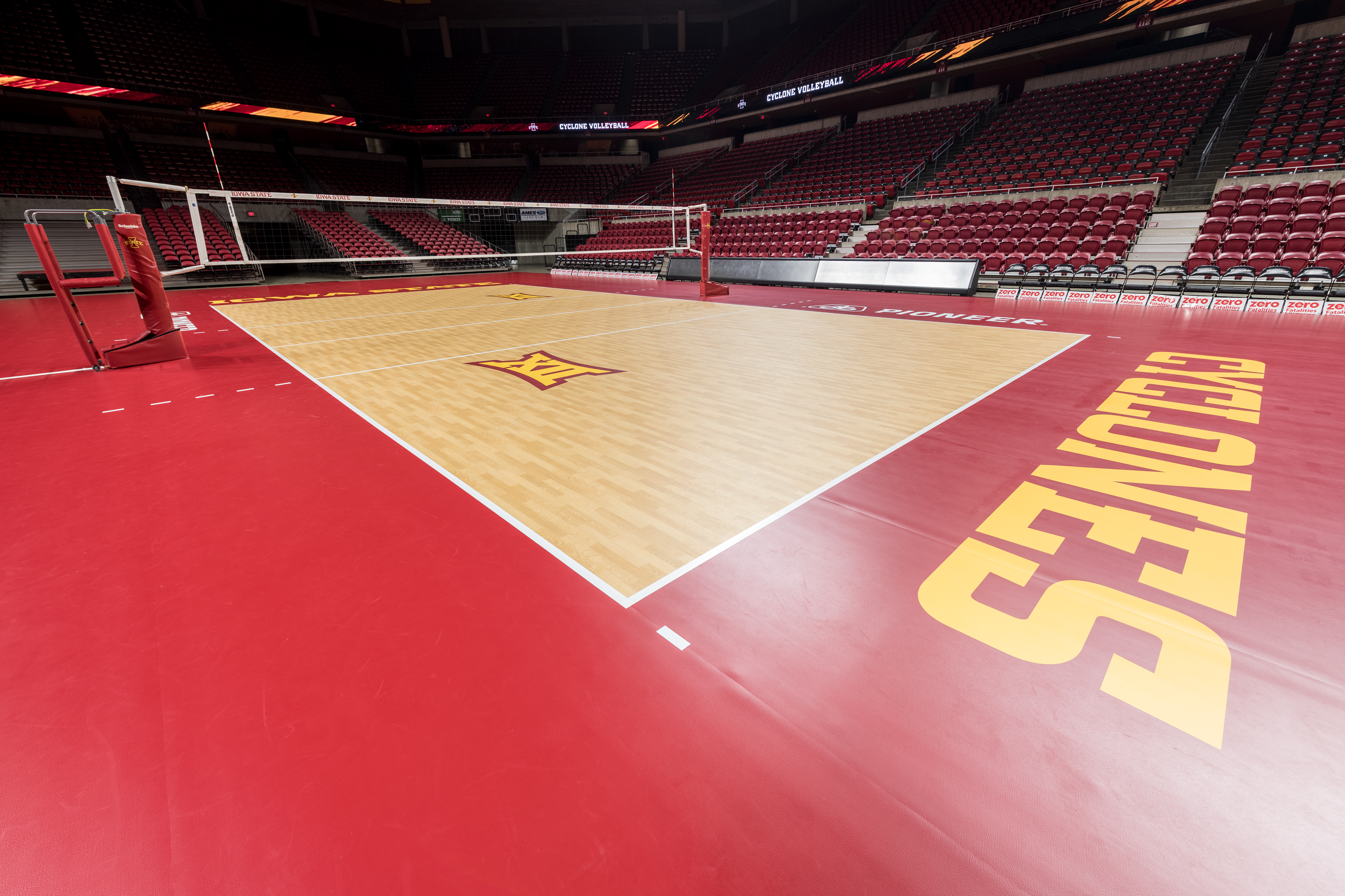 The Iowa State volleyball team practices and competes at Hilton Coliseum. With a capacity of 8,524, ISU annually ranks among the nation's top 15 schools in average attendance. Iowa State set the highest average attendance in school history with 2,991 while ranking at No. 10 nationally in 2022. In 2018, Iowa State became the first program in the Big 12 to have a Taraflex Volleyball Court.