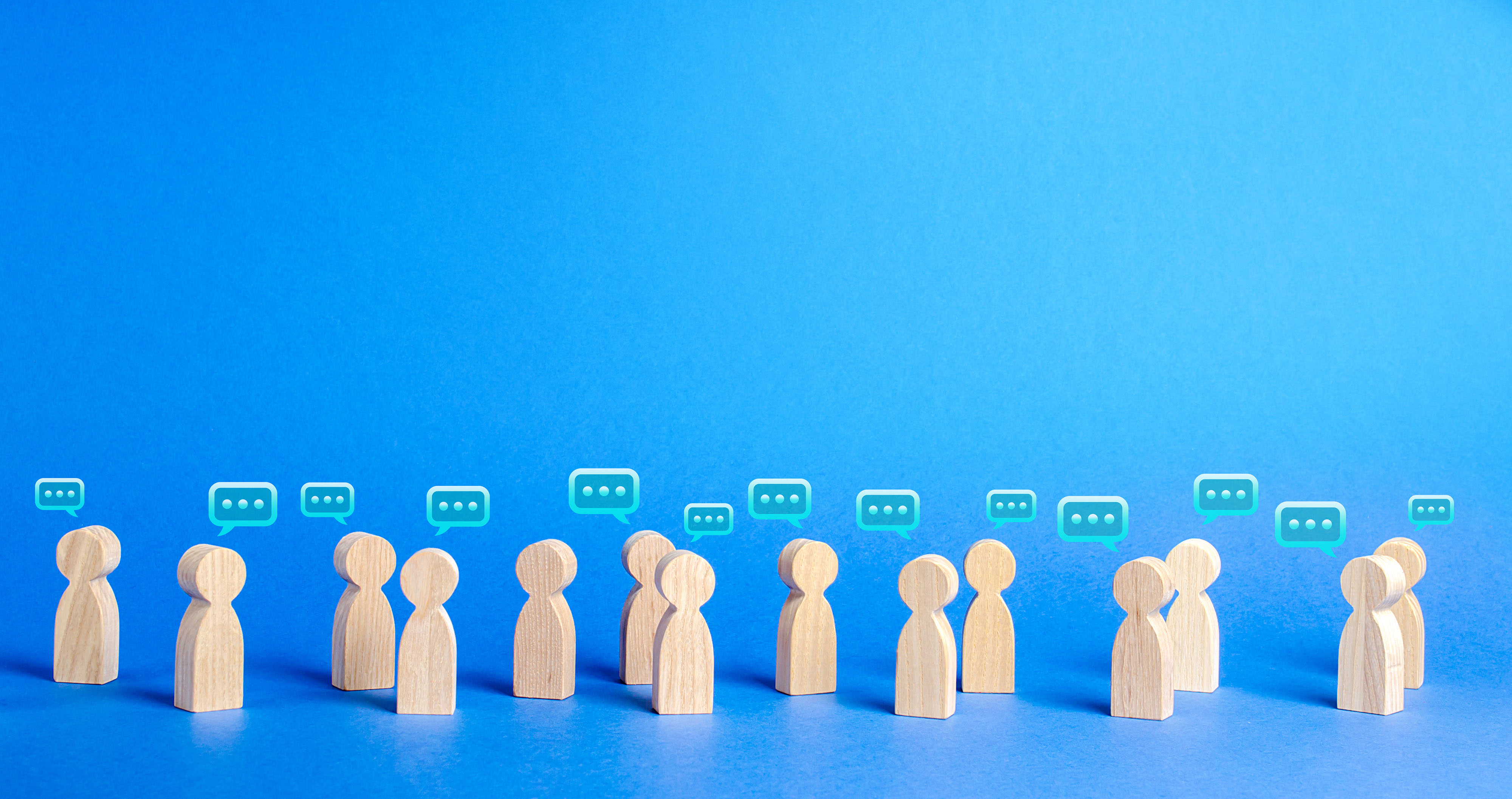 Created with images by Somporn - "A vibrant array of colorful speech bubbles scattered against a dark background, symbolizing communication and dialogue." • CYBERUSS - "Company Culture and Values.,Articulating the company culture, values, and commitment to creating a positive and inclusive work environments" • cooperr - "image of wooden signposts against the sky" • alotofpeople - "Teamwork meeting concept" • gstockstudio - "Close-up on discussion." • vegefox.com - "speak" • fidaolga - "a lot of questions and one light bulb in your hand.,Search for creative solutions to issues" • Andrii Yalanskyi - "Many people figures and comment clouds above.,process of discussion and commenting, the search for fresh ideas.,Best thought, good idea, positive feedback.,Opinion of the public and surrounding people" • fotogestoeber - "many cubes with speech bubble icons on orange background" • fizkes - "Brazilian woman and Latino man engaged in focused discussion in front of large whiteboard filled with diverse sticky notes, charts, and planning grids.,Strategizing, goals reviewing and collaboration" • meeboonstudio - "Hand holding of an empty white speech bubble against a yellow background"