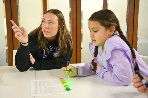 "My favorite part of this event was working with students and teaching them the science behind phenomena that they probably never thought about. Because of the preparation from my professors and field experience over the last three years, I had the confidence and content knowledge to answer questions in a manner that 5th-grade students could understand." -Gabbie McKendry '25, Elementary Education