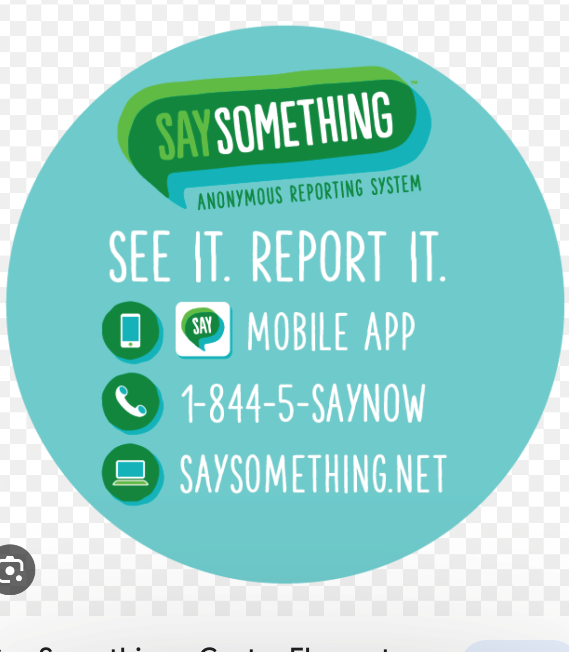 Developed after the tragic loss of life experienced at Sandy Hook Elementary School, the See Something, Say Something Anonymous Reporting System was created to allow students and adults to securely submit anonymous safety concerns anytime, from anywhere to help identify at-risk students and intervene upon behaviors or actions that may cause harm to the student themselves or others. While playing a critical role in preventing unfortunate acts from taking place on our campus, the reporting system is like calling 911 due to a threat to self, a loved one or others. While the application adds a significant layer of safety to our campus, its use, or misuse also carries a significant responsibility and should not be used for non-threatening events or matters easily brought to the attention of a parent, teacher, trusted adult or school administrator. While we do not want to discourage the appropriate use of this preventative tool, it is the intentional abuse, much like the misuse of calling 911, that may result in disciplinary action. False or minor reports and intentional pranks or jokes consume multiple personnel and resources that are needed elsewhere and lessen the effectiveness of the system.