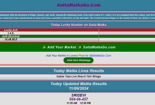 Whether you’re just starting or you’re a seasoned player, Kalyan Satta Matka is the game for you. Join sattamatkago today, and embark on a thrilling journey filled with excitement, strategy, and, most importantly, endless winning opportunities! Your fortune is waiting!