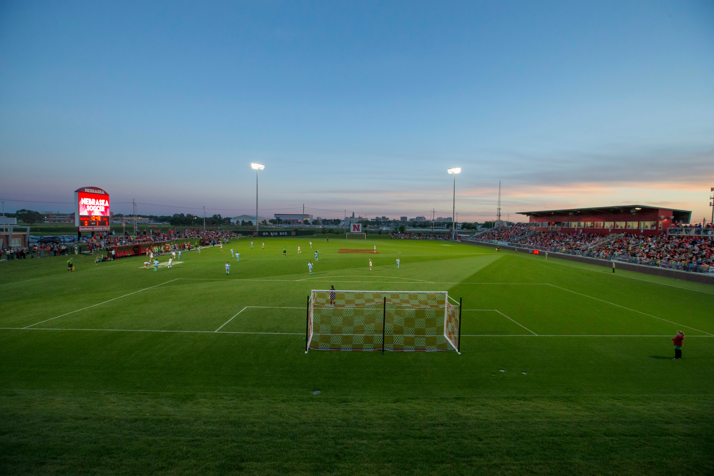 Barbara Hibner Field also features a new technologically advanced video and scoreboard controlled by HuskerVision to enhance the exciting atmosphere at Nebraska soccer games. Barbara Hibner Field has a fully functioning press box that includes a dedicated area for television and video cameras sits atop 2,500 seats in the grandstand for Nebraska's devout soccer fans.