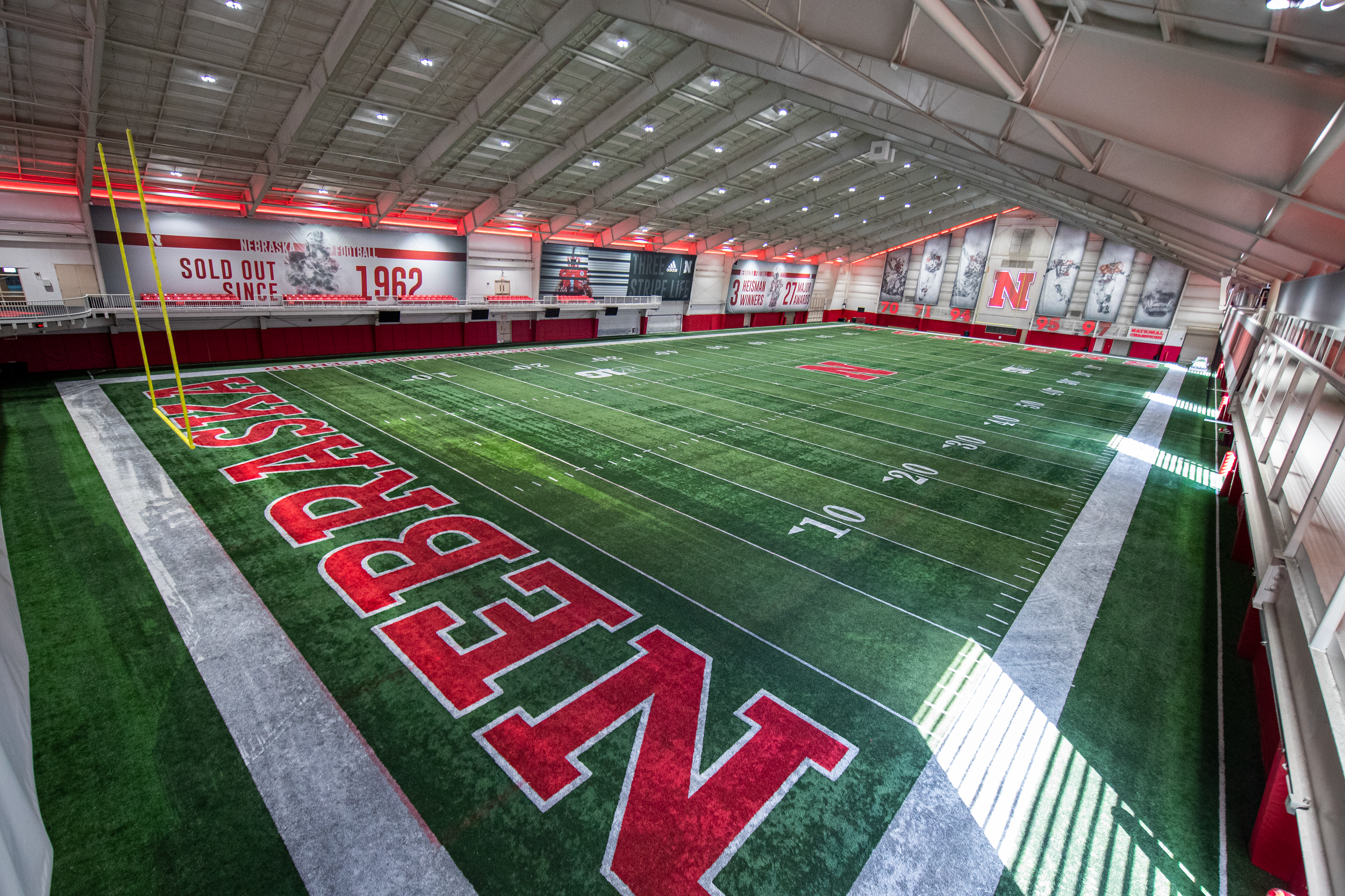 The Hawks Championship Center opened for the soccer team during the spring of 2006. The magnificent facility features FieldTurf ideal for year-round indoor training for the Huskers. New FieldTurf was installed in the summer of 2016.