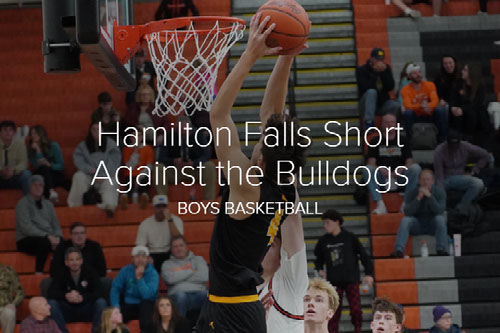 WHAT HAPPENED: The Hamilton Boys Basketball team lost 70-48 to the Byron Center Bulldogs, in a competitive matchup. PICTURED: Brett Schrotenboer working against a Byron Center Guard.