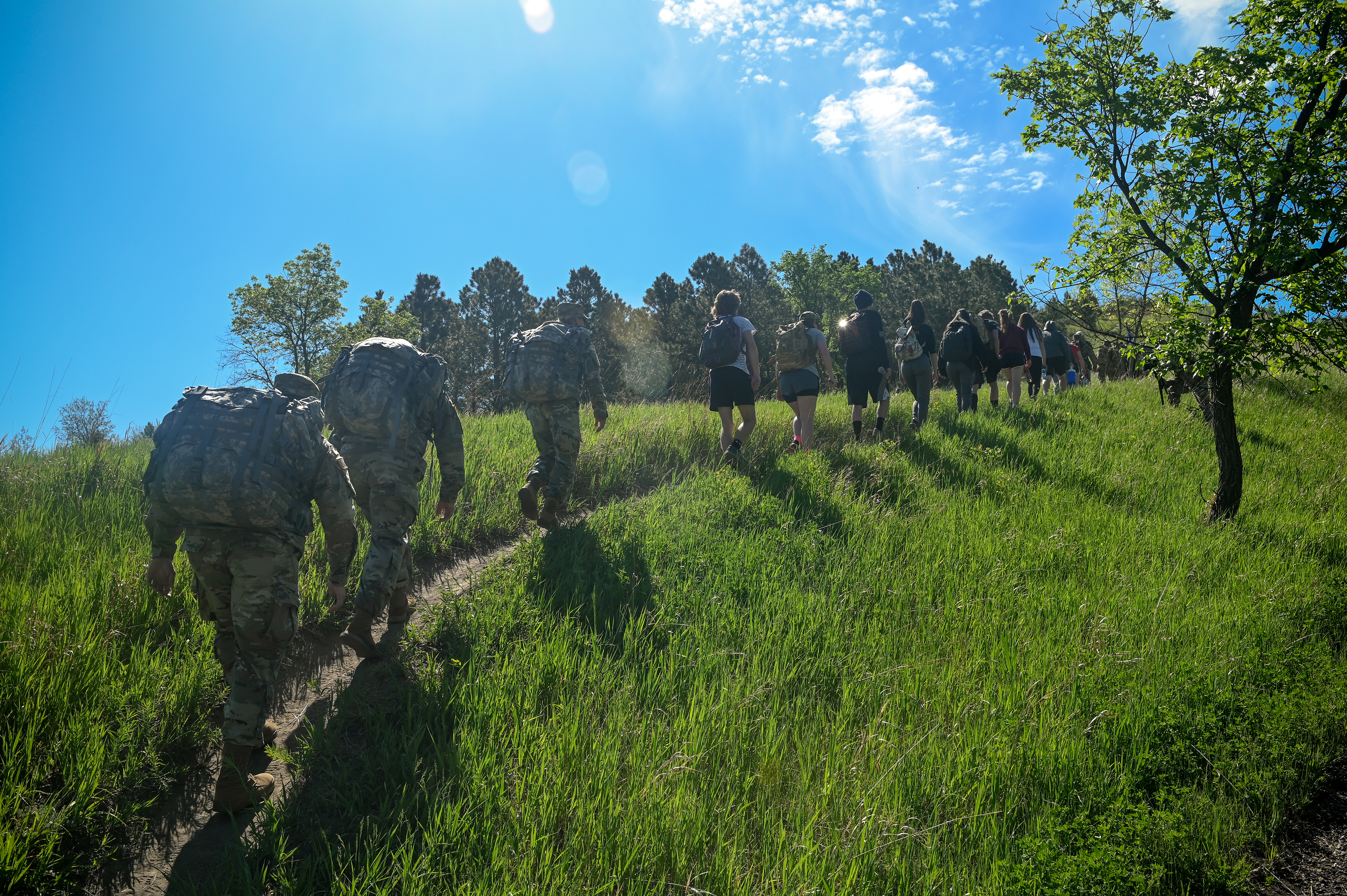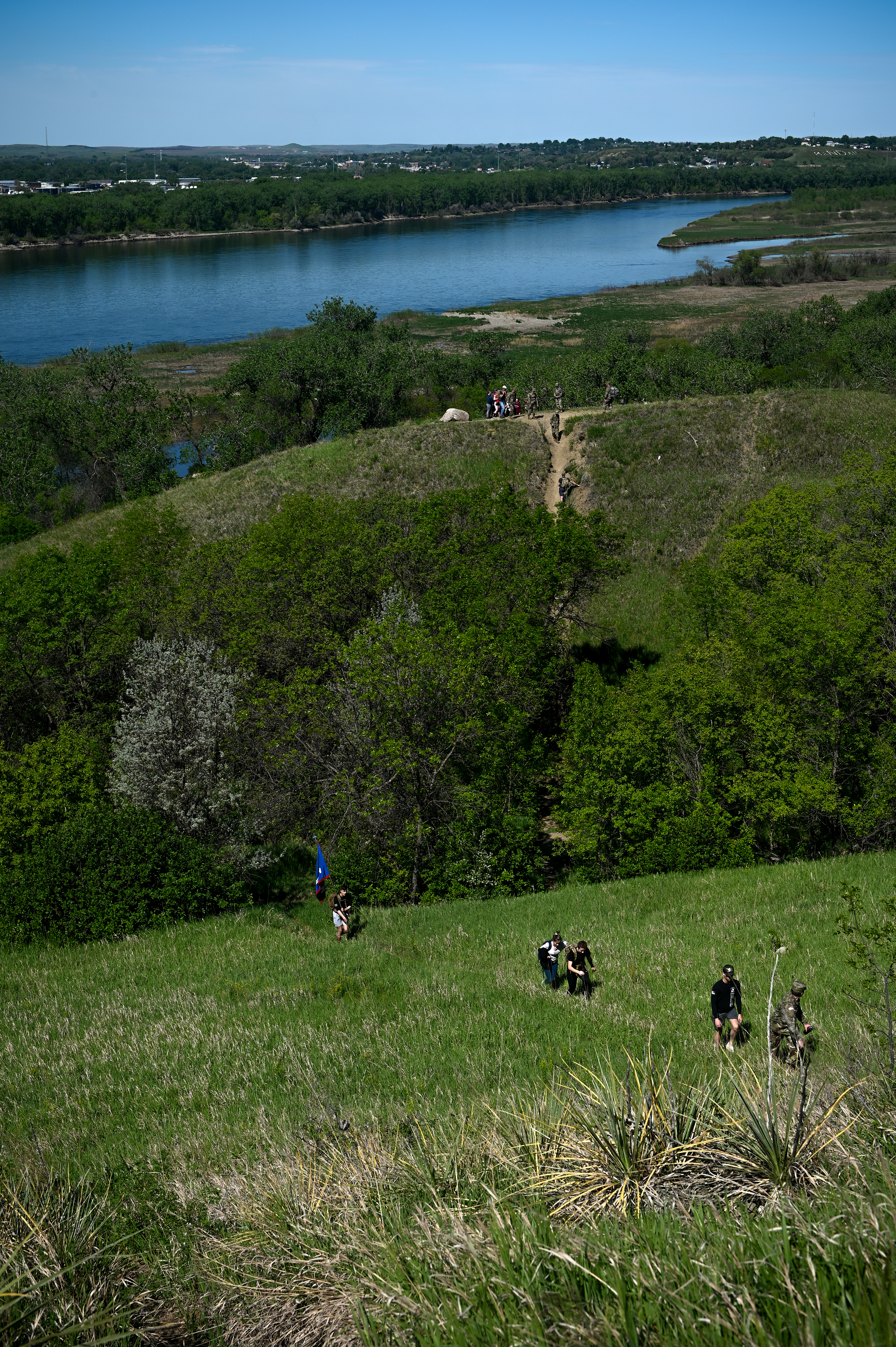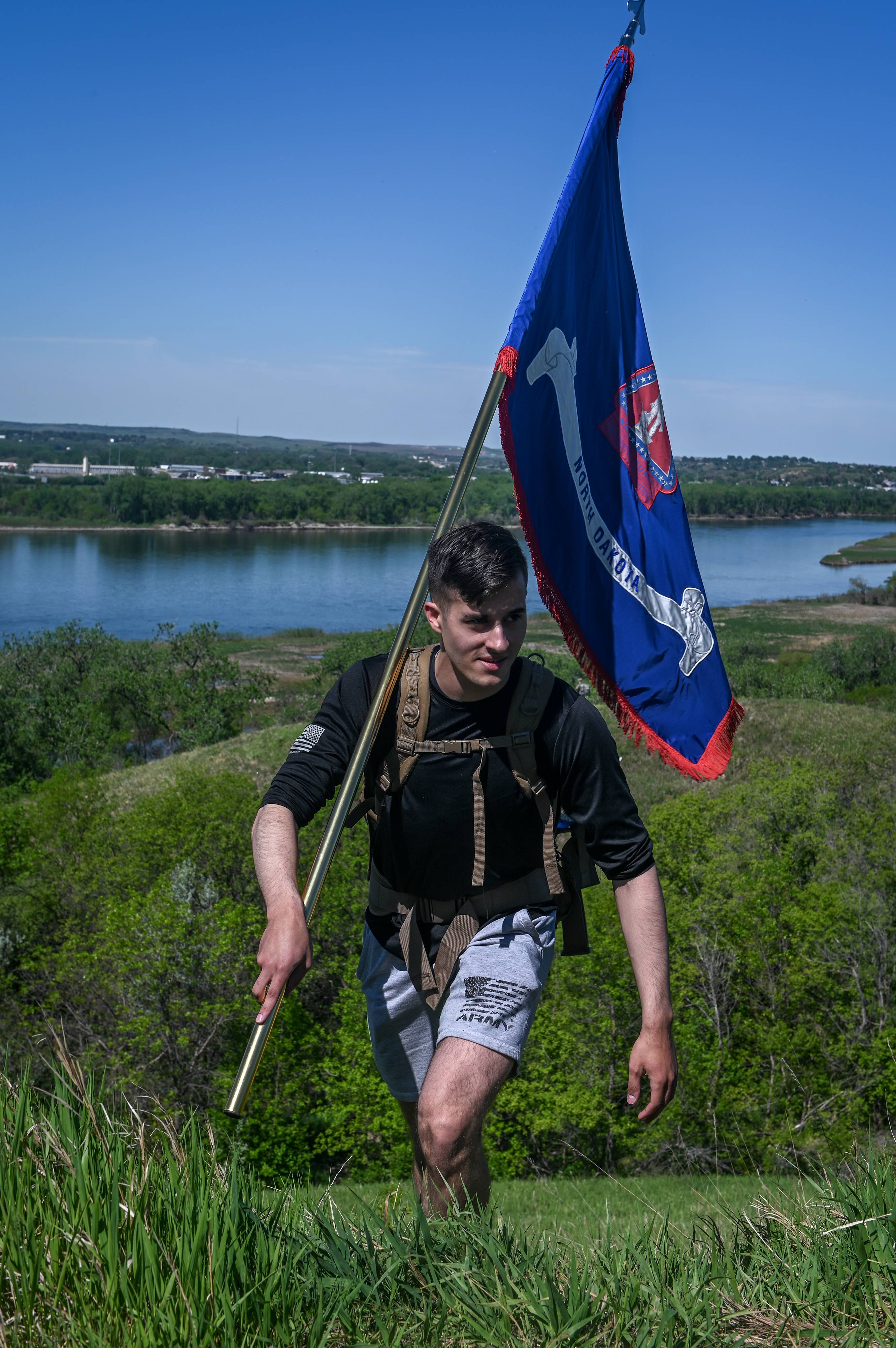 Twenty new Soldiers along with ten guests from the N.D. Army National Guard’s Bismarck-based Recruit Training Company participated in a 2.5-mile ruck march along a mountain bike path east of Bismarck's Pioneer Park on May 29. The march, led by Sgt. 1st Class Jon Hoefer and Sgt. Samuel Kroll, is designed to help prepare recruits for the physical fitness components of Basic Combat Training. It also serves as an introduction to basic military training to those considering enlisting in the Army National Guard.