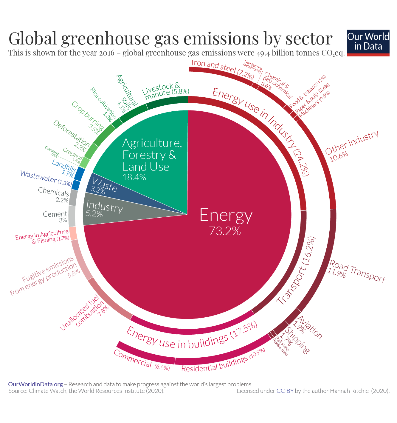 A word of warning: With carbon footprint data, it is always important to understand what factors have been included. In this graph, for example, agriculture and food production are not congruent.
