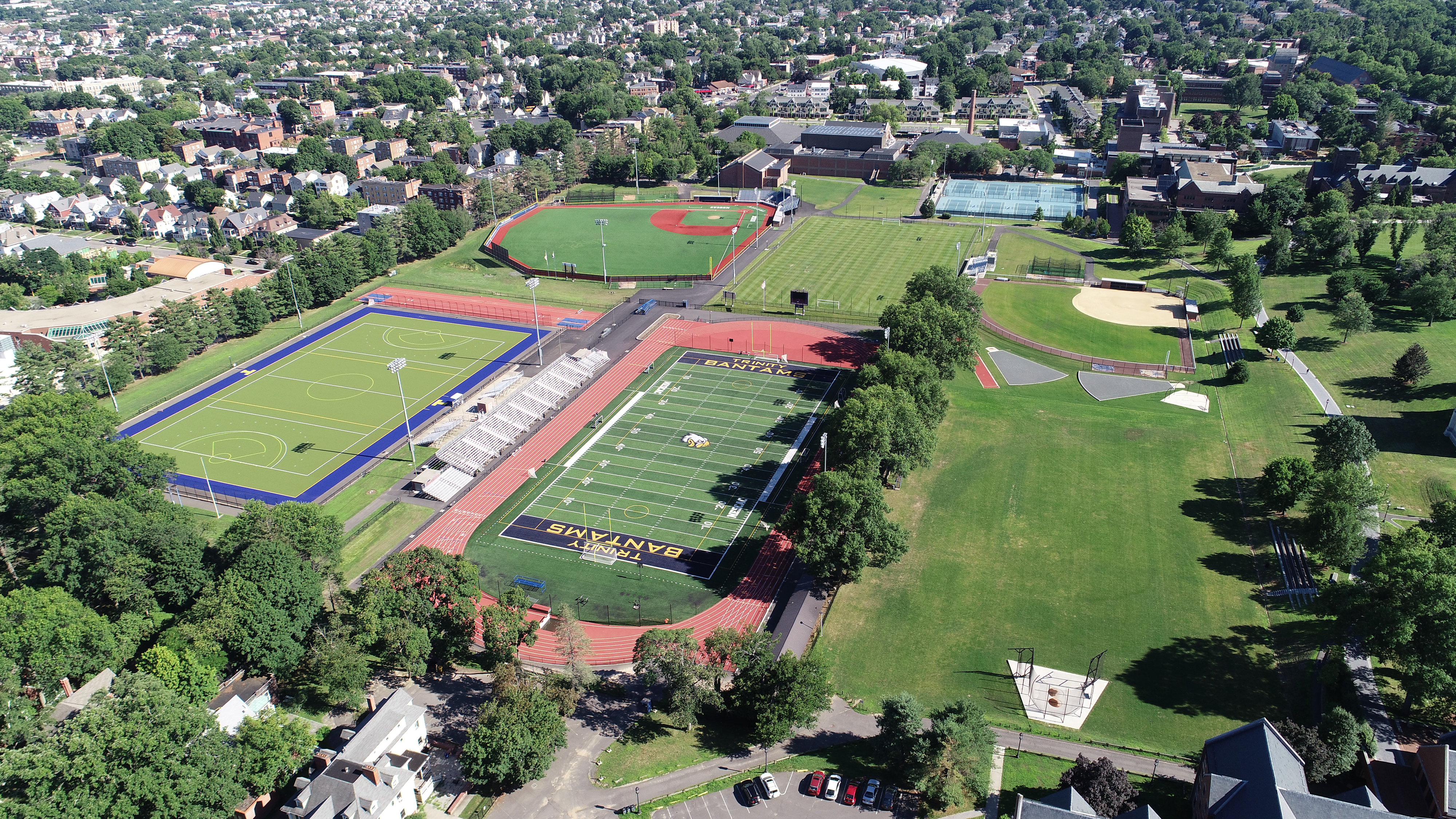 At Trinity, our game fields are all conveniently located near each other in the center of campus. We are also lucky to be one of the few DIII schools that has a natural grass field with lights. We hold most of our practices on this field as well as all of our home games. To see more of our athletic facilities, check out the button below!