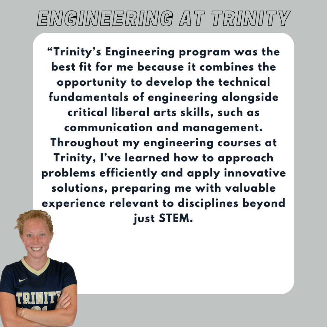 I would describe the average Trinity student as someone that is always striving to succeed whether it is in athletics or academics. They have a strong commitment to their studies but also enjoy being an active part of campus life."