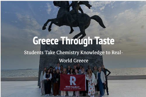 World Strides, an educational travel and tours abroad company, helped plan and organize the trip to Greece. The company also provides scholarships to students who write essays about the impact the trip will have on their future careers. Three Rose-Hulman students—Lily Schoenewolff, Makayla Johnson and Gillian Gorocica—received partial scholarships from for their study abroad experience. World Strides rarely awards more than one scholarship to an institution, let alone three that went to Rose-Hulman students after a blind review of essay applications.