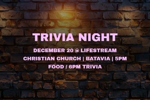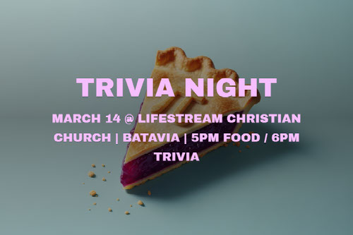 Come and join us for TRIVIA NIGHT at Lifestream Christian Church. We're a simple and sincere congregation and we want to genuinely have a little random fun answering questions. It's totally free. You don't need to be a member. You don't need to be a genius, or memorize any complicated rules. Just show up (with other non-genius friends, preferably) and have fun.