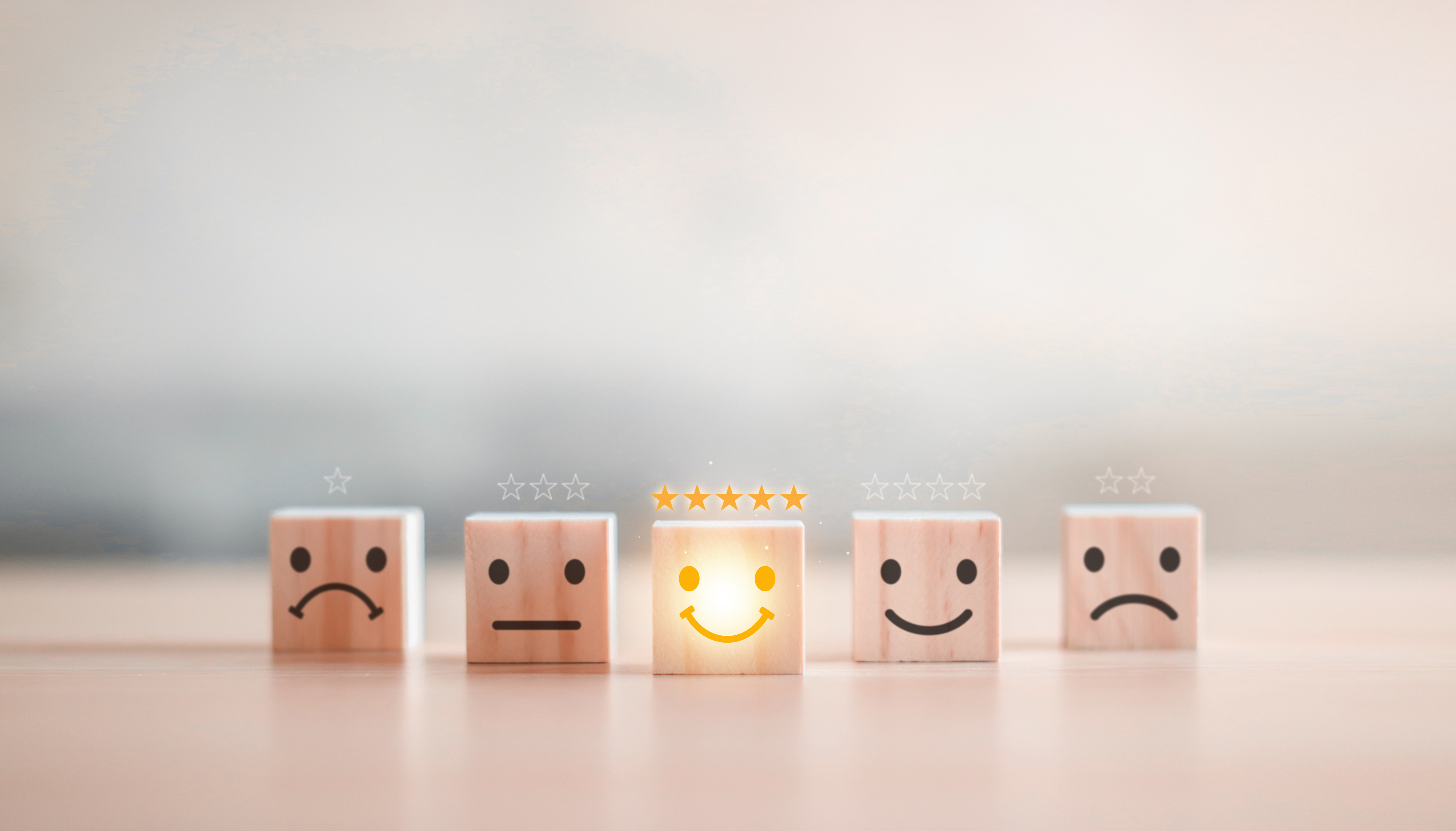 Created with images by Jo Panuwat D - "emotion face block. Customer choose Emoticon for user reviews. Service rating, ranking, customer review, satisfaction, mood, evaluation and feedback concept" • Smile Studio AP - "customer services best excellent business rating experience. Satisfaction survey concept. Hand of a businessman chooses a smiley face on wood block cube. 5 Star Satisfaction" • sichon - "Customer show smile face emoticon for rating. Service rating, feedback, satisfaction concept"