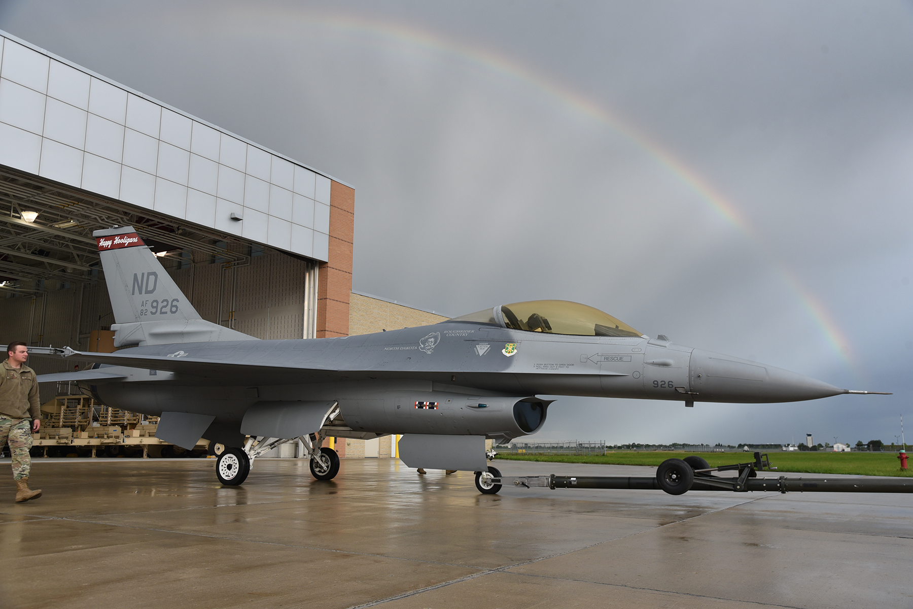A 119th Wing F-16 Fighting Falcon aircraft normally displayed at Heritage Park on the N.D. Air National Guard Base will be on loan to the Fargo Air Museum. The F-16 will be displayed at the museum in commemoration of the Sept. 11, 2001 anniversary of the terrorist attacks on the our nation. Happy Hooligan F-16s were the first aircraft to respond to the Pentagon attacks after launching from Langley Air Force Base in Virginia where they were on alert duty. This aircraft is similar to the F-16 featured in the painting ‘First Pass, Defenders Over Washington.’ The N.D. Air National Guard flew the F-16 from 1990 to 2007. (U.S. Air National Guard story and photo by 1st Lt. Jeremiah Colbert)