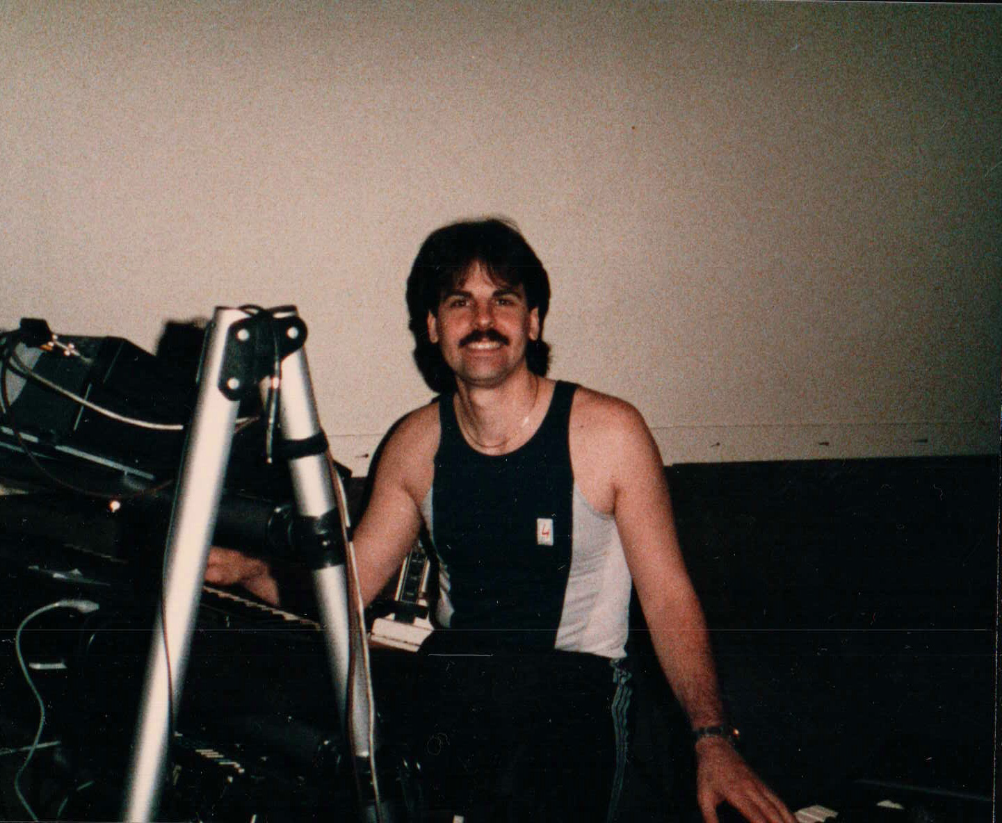 Rack of toys: - 2 Yamaha TX81Z, Yamaha SPX-90, Alesis HR-16, Alesis microsynth and JLCooper MSB-Rev2, Akai ME25S midi mapper, Furman Power Conditioner and Korg Line Mixer.