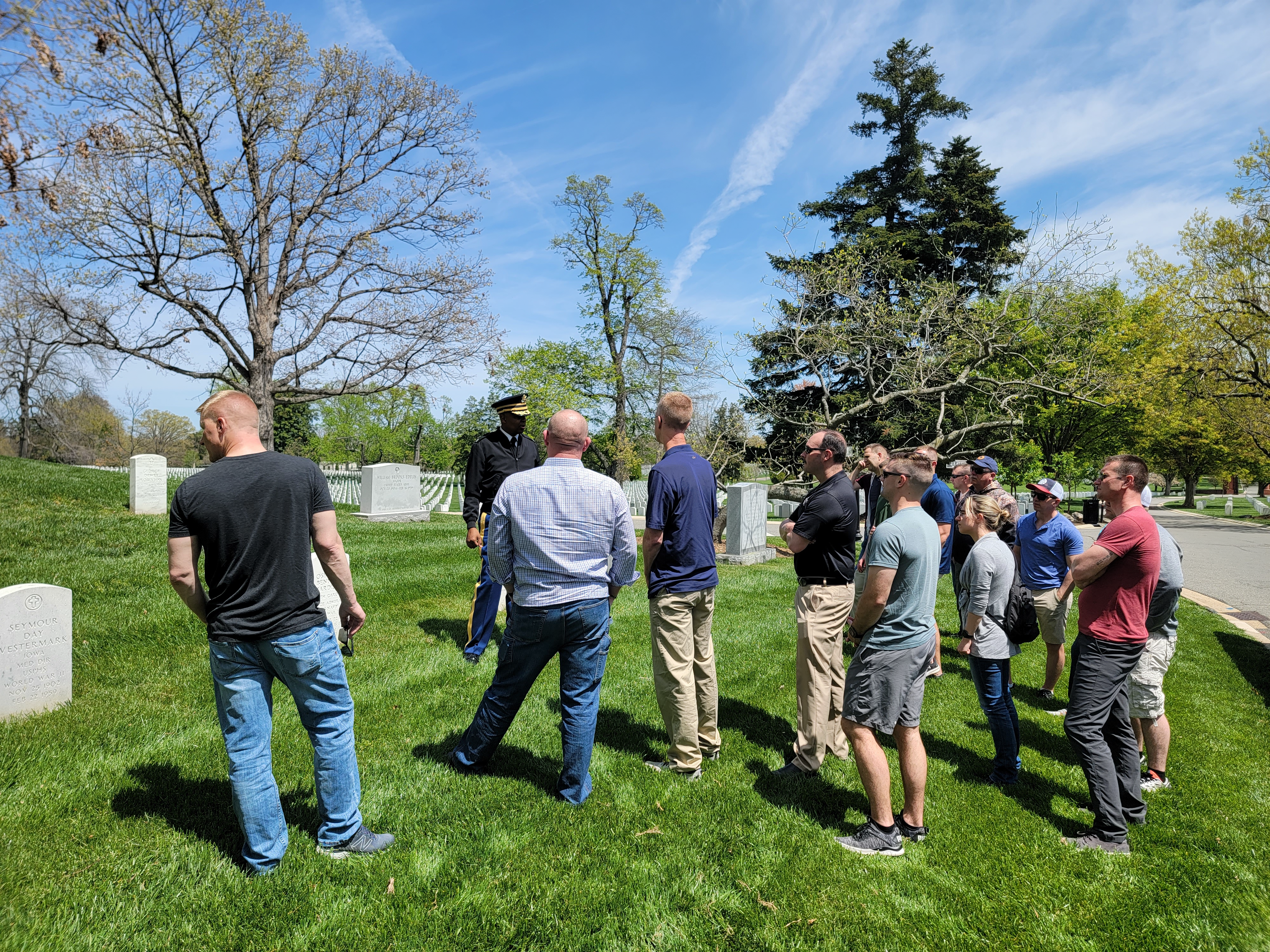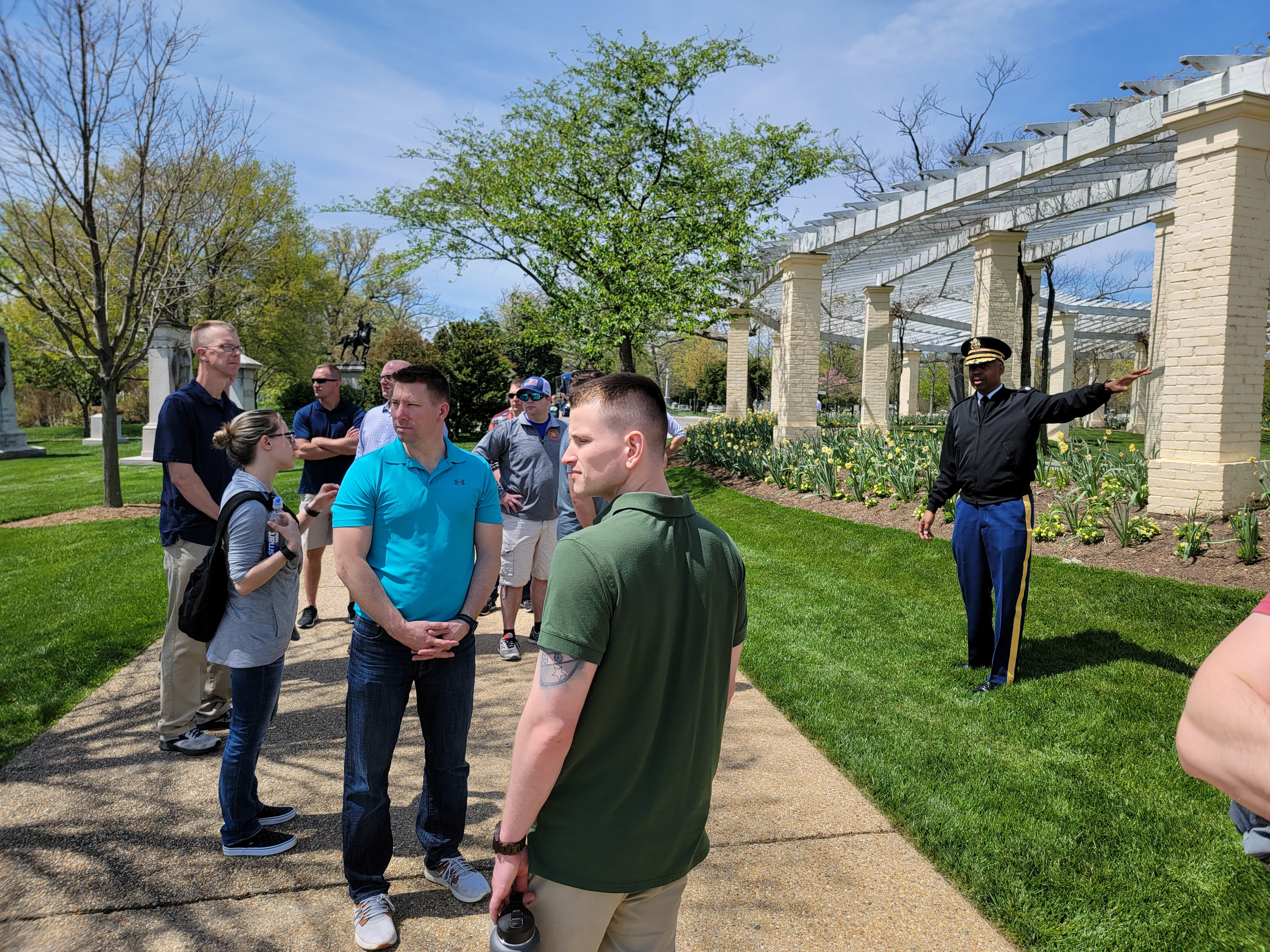 The 1st Battalion, 188th Air Defense Artillery Regiment (1-188th ADA) conducted professional development with a tour through the Arlington National Cemetery in Washington D.C., April 22, 2022. (National Guard story and photos by 1st Lt. Jake Kipp, 1st Battalion, 188th Air Defense Artillery Regiment)