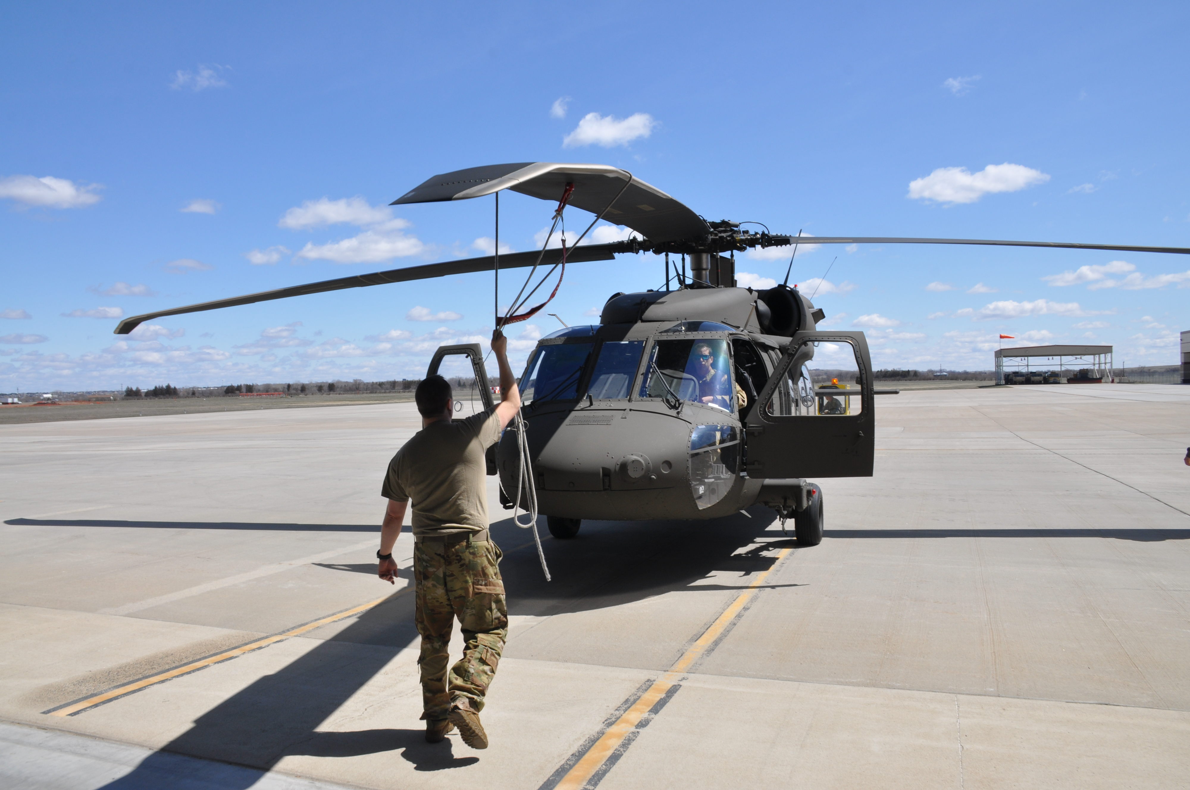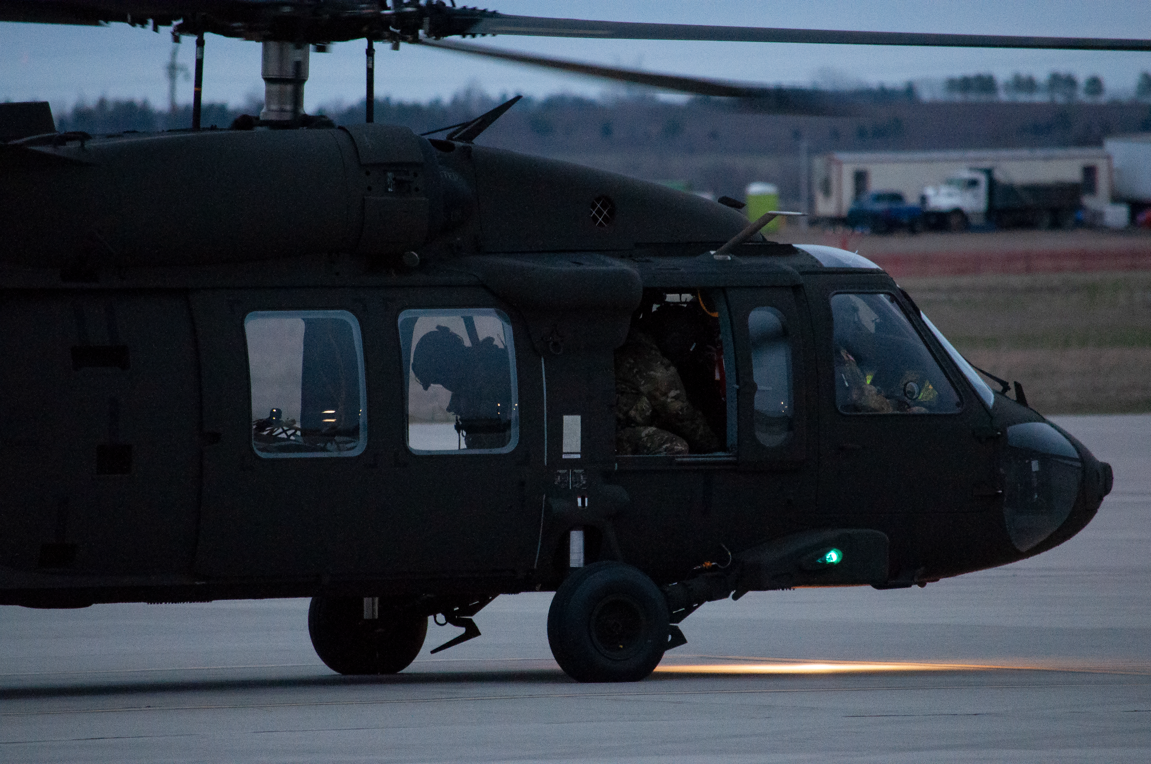 Aircrew and supporting personnel from Company C, 2nd Battalion, 285th Aviation Regiment, were alerted mid-day Sunday. They quickly assembled at the Army Aviation Support Facility in Bismarck, prepared their aircraft and equipment, conducted mission and safety briefings, and departed at 2:32 p.m.