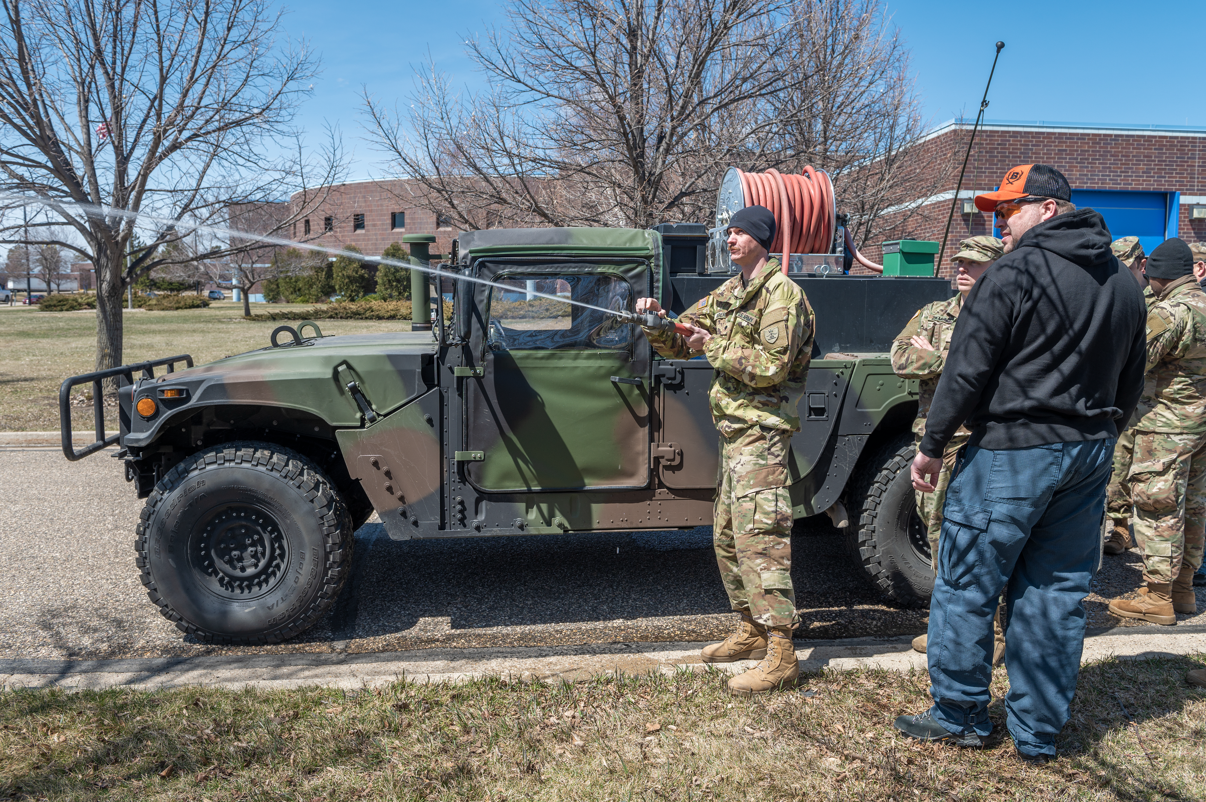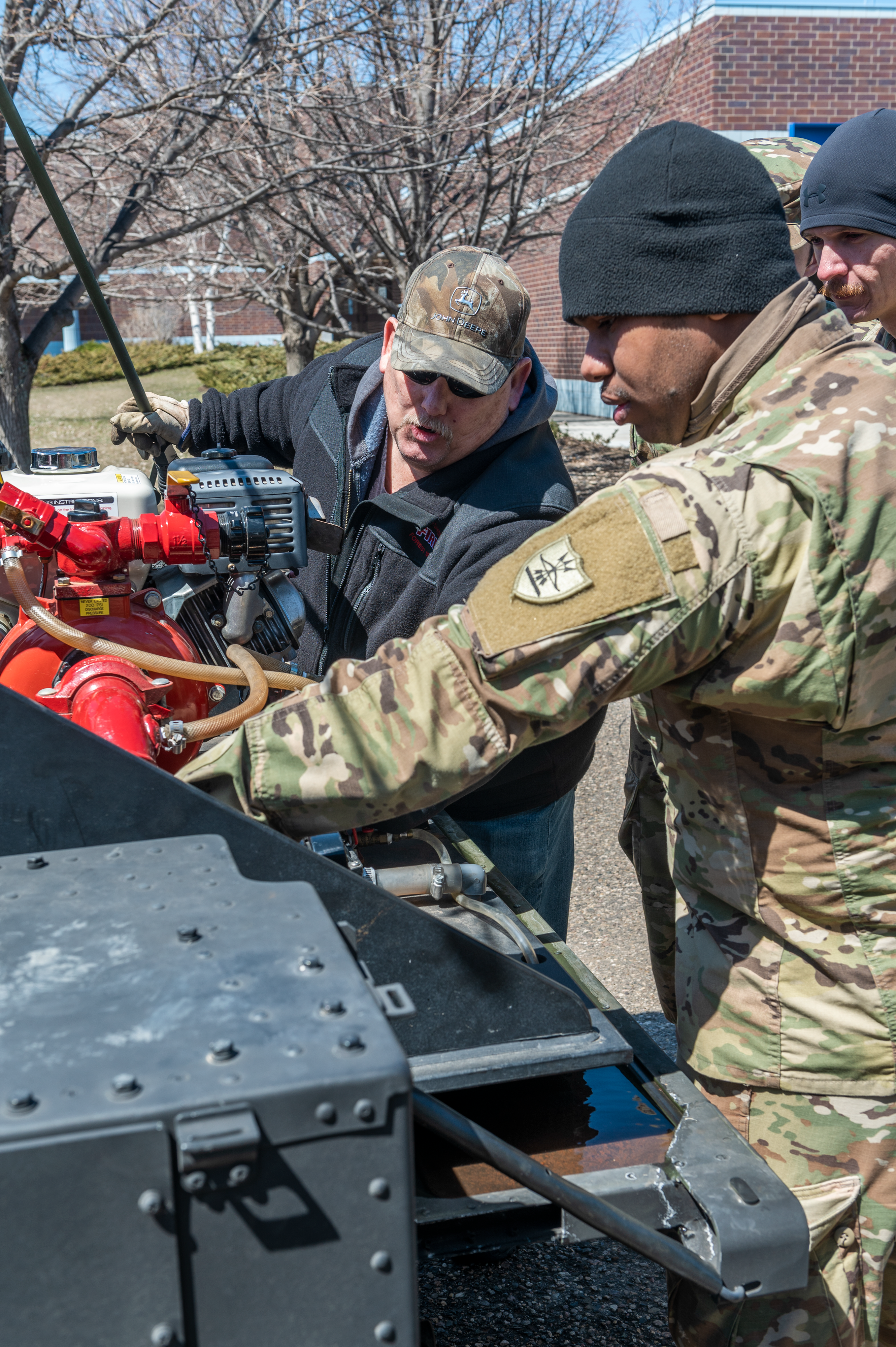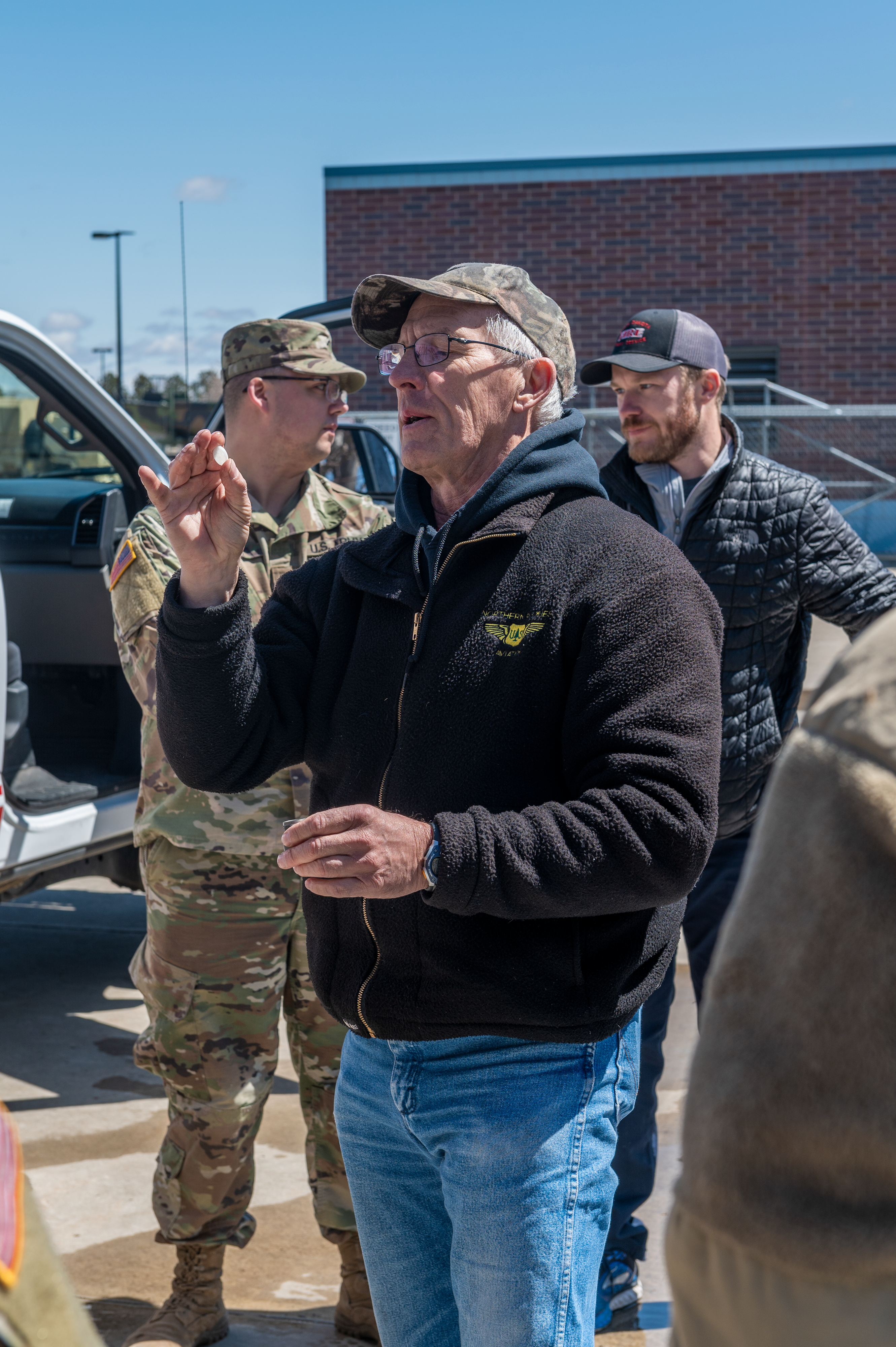 Pete Warmuth, N.D. Forest Service, provides an overview of the equipment on their emergency service vehicles during the wildland firefighting certification at Raymond J. Bohn armory in Bismarck, May 1, 2022. (National Guard photo by Officer Candidate Michaela C.P. Granger, N.D. National Guard Public Affairs Office)