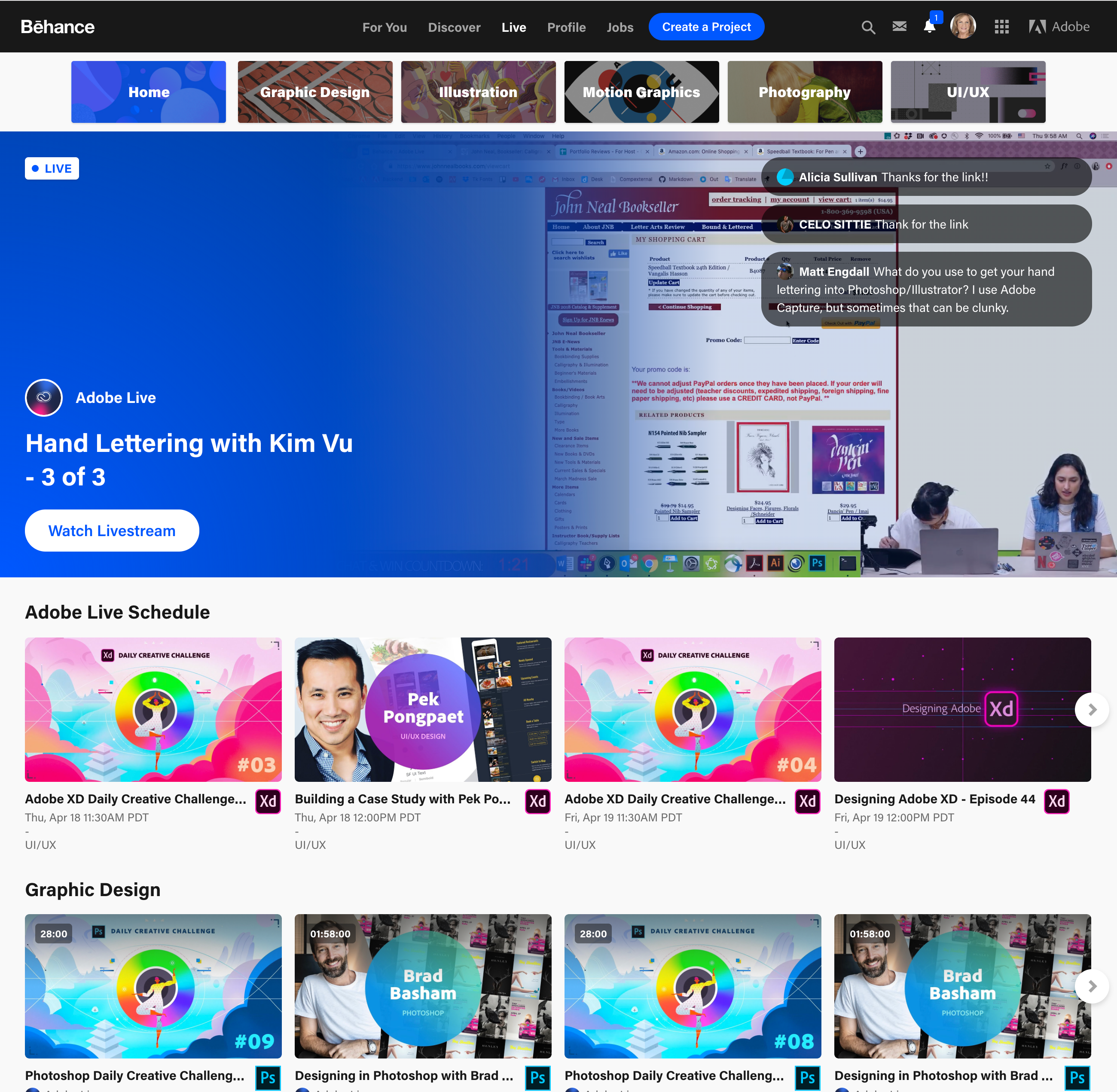 - You can always access livestreams at either behance.net/live, or from the Live link on your navigation.