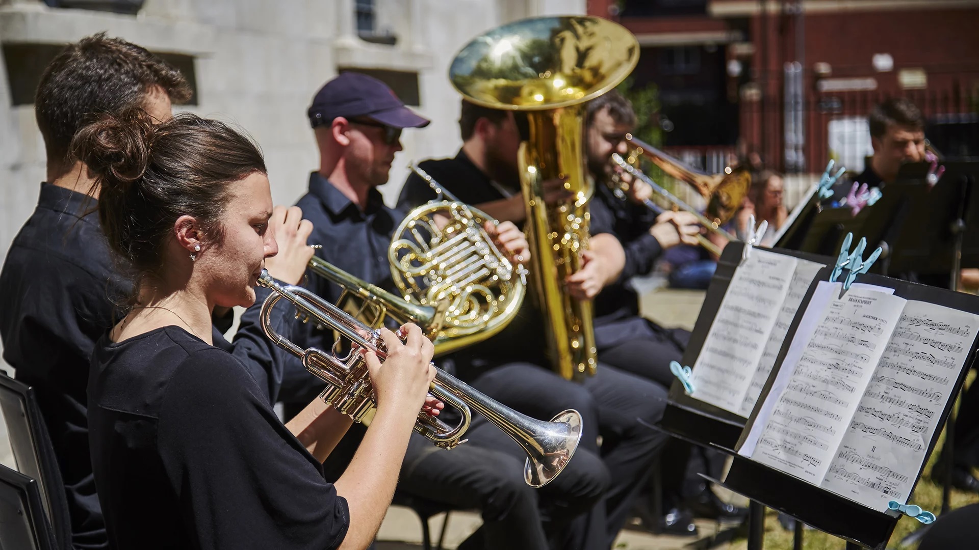 A fanfare featuring four of the top Principal Trumpet players in the United States, Chris Martin (New York), Michael Sachs (Cleveland), David Bilger (Philadelphia), Ryan Anthony (Dallas). All four trumpet players are performing on C trumpets, which is the standard trumpet in most orchestras.