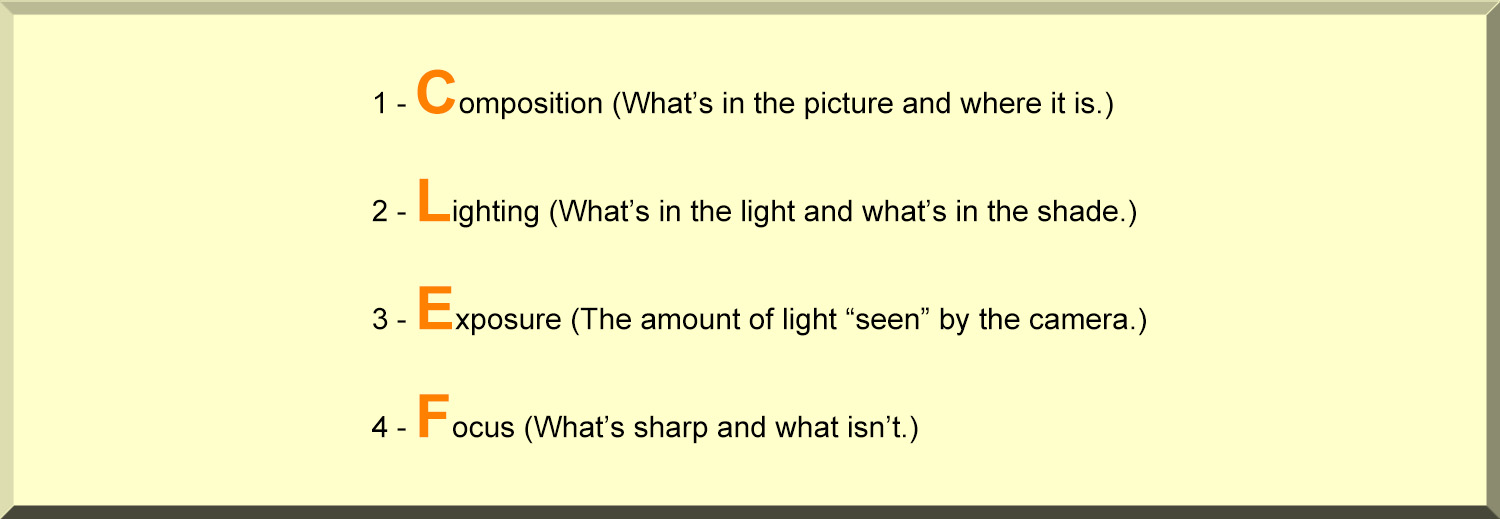 Whenever you prepare to take a photograph there are four important things to remember -