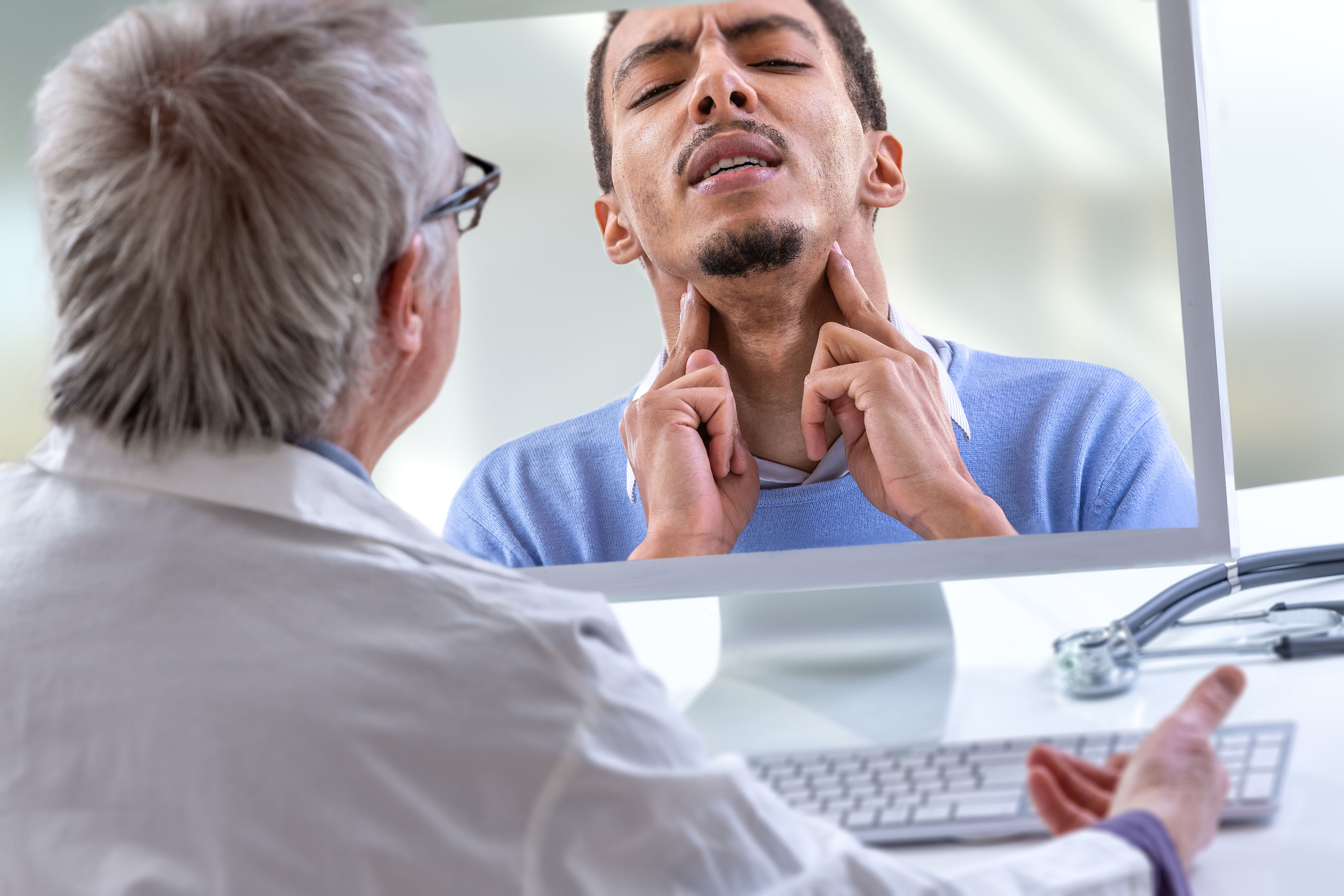 Created with images by Angkana - "Empty space studio dark room of Concrete floor with spot lighting and smoke in black background." • MQ-Illustrations - "Rural Health.,Doctor in smock holds stethoscope.,The word Rural Health is next to it.,Symbol of medicine, illness, health" • Syda Productions - "unhappy woman crying on floor" • gustavofrazao - "Good Health written on rural road" • Andrey Popov - "Telehealth Patient Making Hypertension Blood Test" • peopleimages.com - "Child, black man and laptop screen with doctor for telehealth service, communication and advice.,Home, boy and father with pediatrician on tech for medical support, discussion or virtual consultation" • InfiniteFlow - "Doctor telemedicine service online video with pregnant woman for prenatal care .,Remote doctor healthcare consultant from home using online mobile device connect to internet for live video call ." • JPC-PROD - "Doctor with a stethoscope on the computer laptop screen.,Telemedicine or telehealth concept, sore throat," • Vadim Pastuh - "View from back above male shoulder on the laptop with diverse employees, coworkers on the screen, video call, online meeting.,App for video conference with many people together" • vepar5 - "outline map of us state of missouri on blackboard" • Studio Romantic - "Doctor and patient during obesity consultation support.,The physician writes notes as the fat overweight man listens during medical exam in clinic.,Collaborative medical weight management" • nenetus - "Beautiful cheerful female doctor talking while explaining medical treatment to patient in the consultation." • Dzmitry - "Time to telehealth.,Male hand flips wooden cubes and changes the word 'health' to 'telehealth'.,Beautiful yellow table, white background, copy space.,Business and telehealth concept."