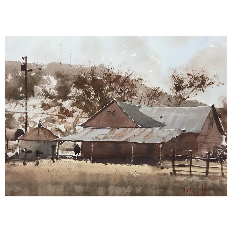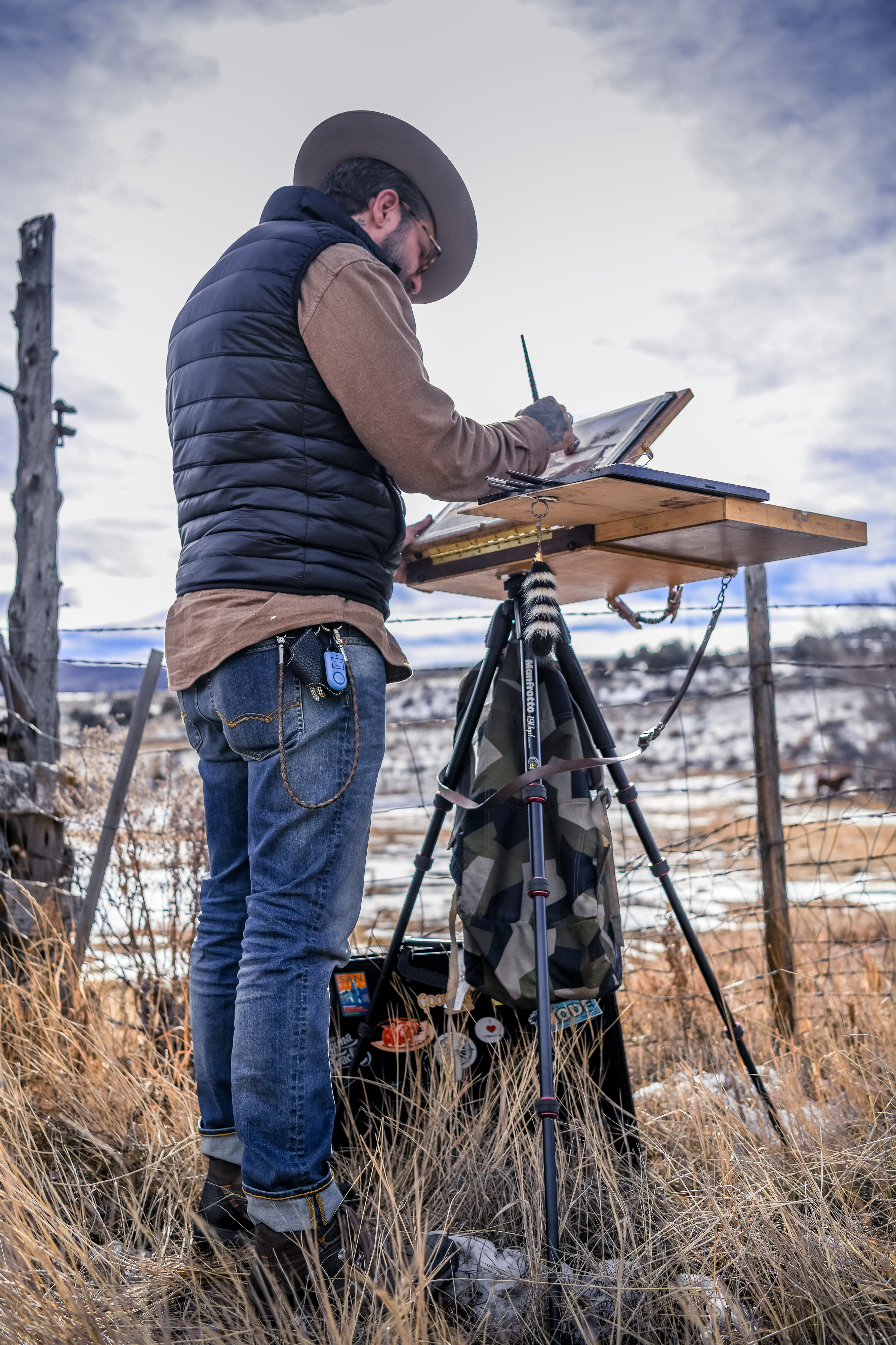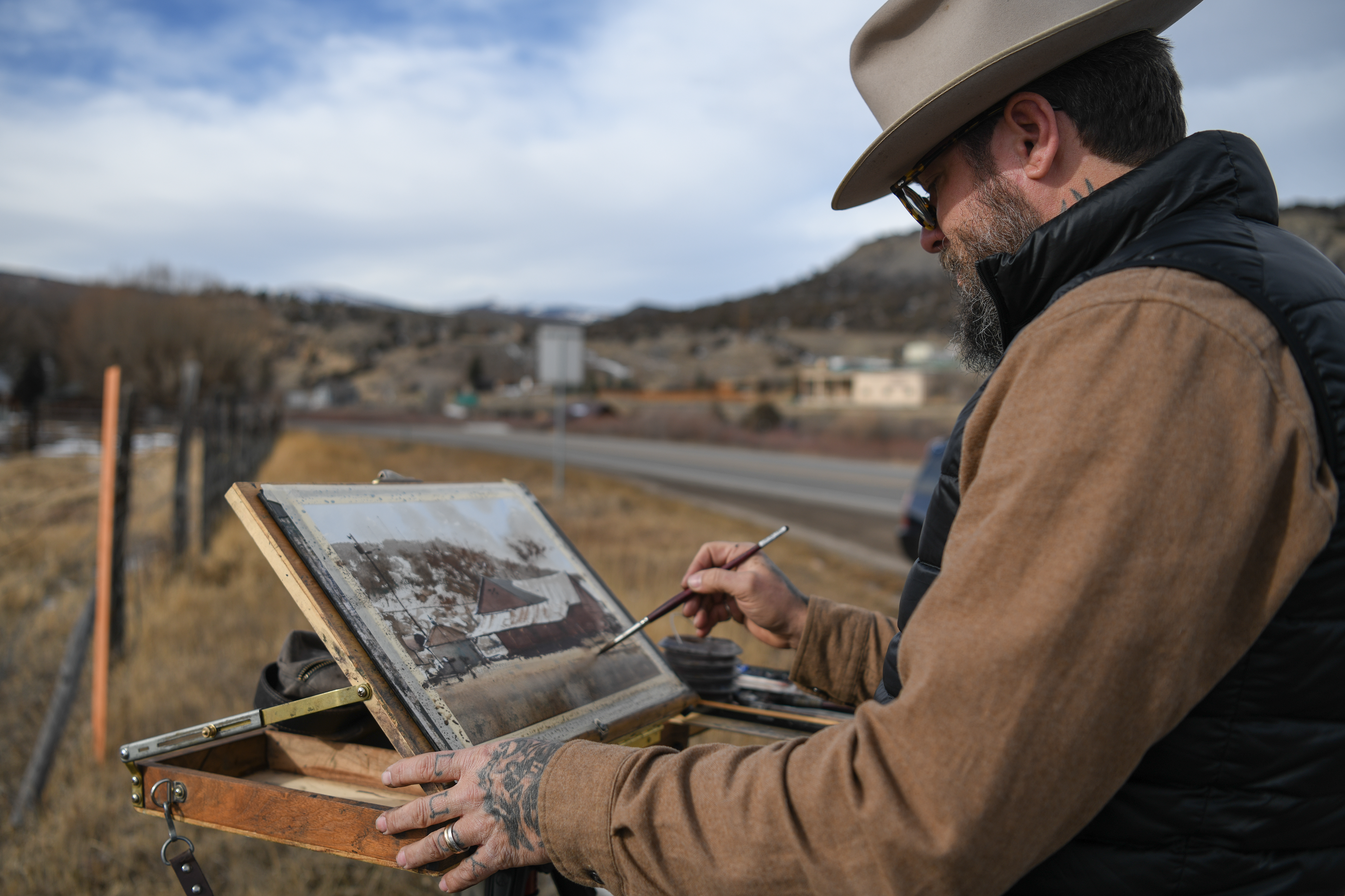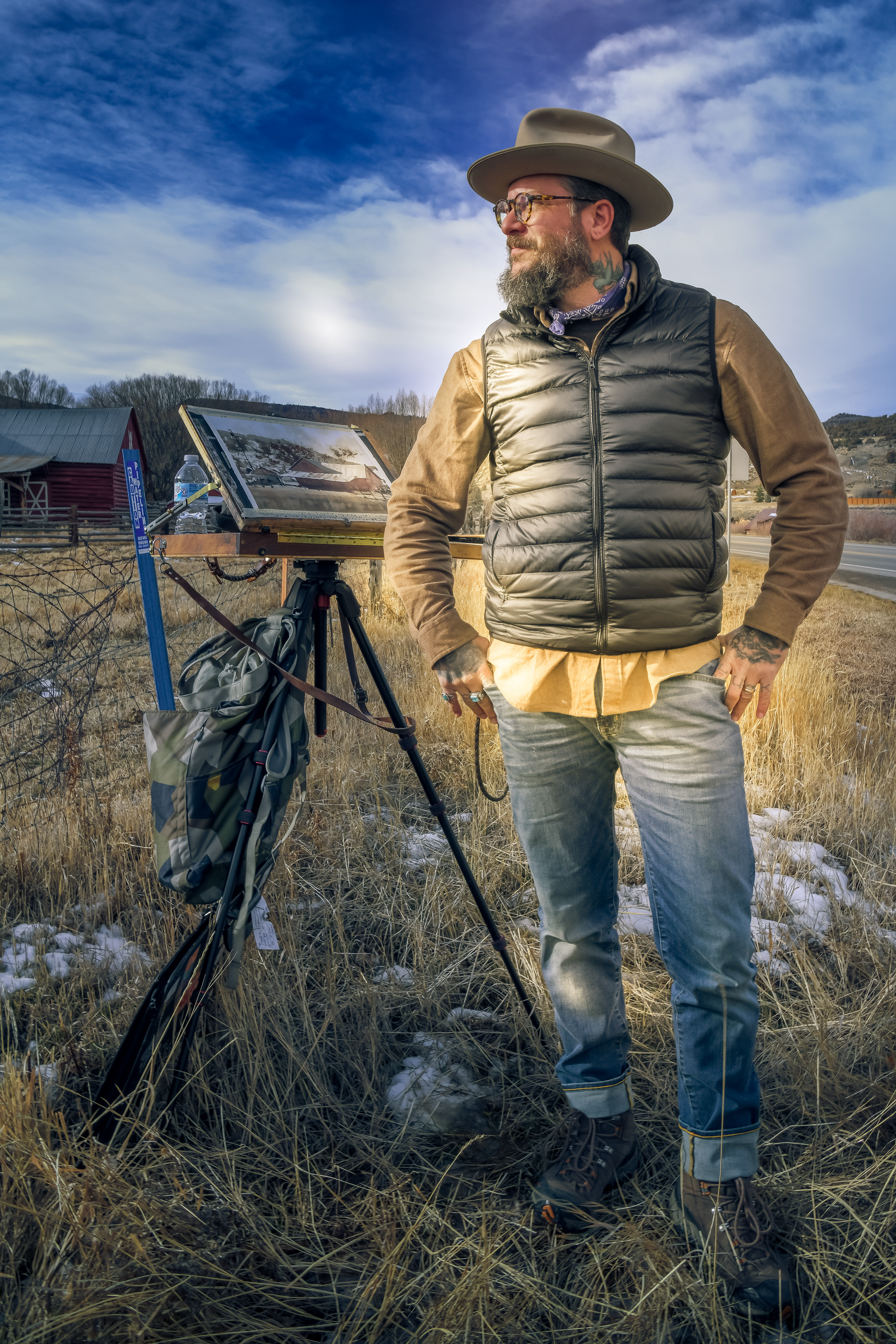 Meeting Daniel Marshall, one of Colorado’s most decorated watercolor artist was pure luck. Driving the quiet backroads of Route 6 parallel to the east bound highway I could not help but notice a painter facing the iconic red barn and stable in Wolcott, Colorado.