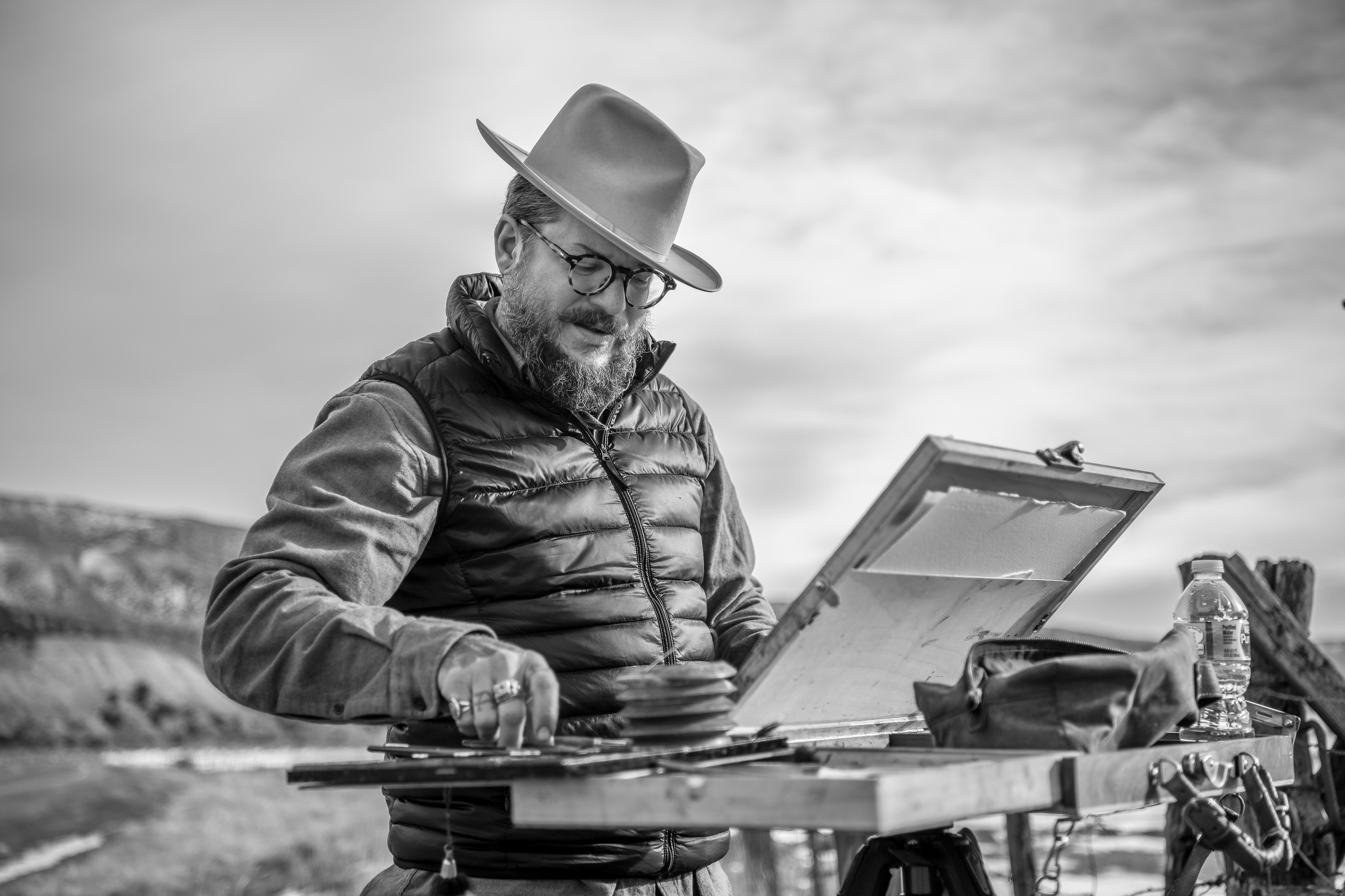 Meeting Daniel Marshall, one of Colorado’s most decorated watercolor artist was pure luck. Driving the quiet backroads of Route 6 parallel to the east bound highway I could not help but notice a painter facing the iconic red barn and stable in Wolcott, Colorado.