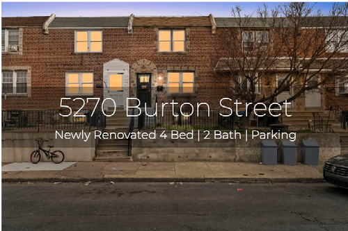 Welcome to 5270 Burton Street, a beautifully renovated 4-bedroom, 2-bathroom home in the heart of Philadelphia. Blending modern style with thoughtful functionality, this move-in ready property offers approximately 1,540 square feet of stylish living space designed for both comfort and entertaining.