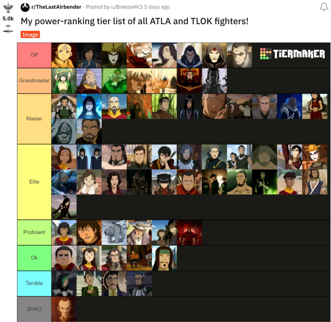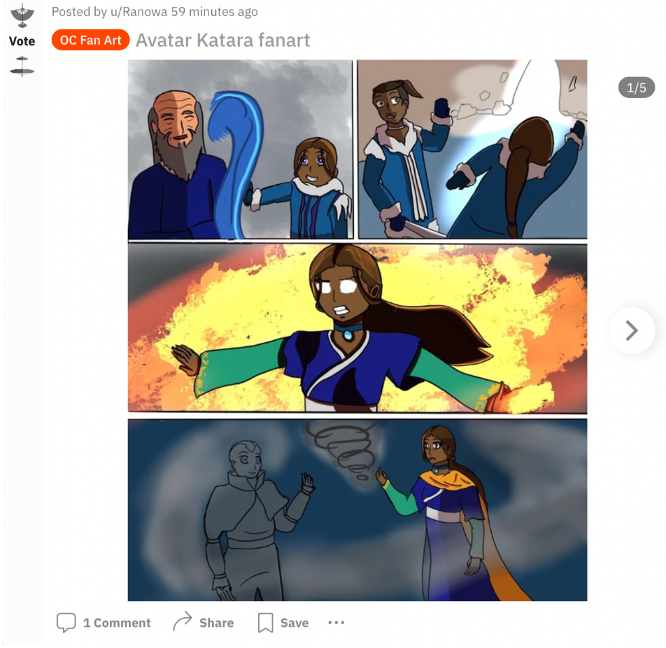 Other times, bloggers or Reddit users will post their “tier-ranking list” of the most powerful benders. This seems to derive the most attention on social media posts as people love to interpret others’ opinions and thoughts on those ideas. An example of this is shown in a Reddit post. This user in r/TheLastAirbender community, containing 1.2 million fans, made a list of his most powerful fighters. Content like this is what sparks creativity and critical thinking of the fanbase.