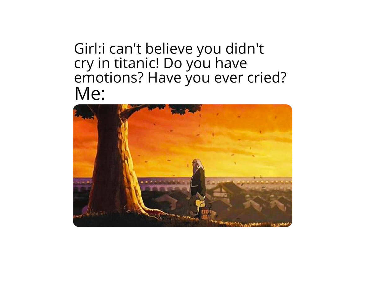 Posts such as these are referred to as “nostalgia effect” posts. They are composed of either sad, heartwarming, or down-right awesome scenes from the show. One person created a meme about how sad this scene from the show was using the nostalgia effect. The scene from the show is from The Tales of Ba Sing Se, Season 2. It depicts one of the most deeply loved characters, General Iroh, singing “Leaves From the Vine” to his son who died in the war years previous. The actual scene is very sad and is supposed to be one of the most impactful moments of the show, considering the entire episode was in loving memory of the voice actor for Iroh, Mako. Nostalgic posts like this move the fans in an emotional way and bring them together to think back on moments similar to this.