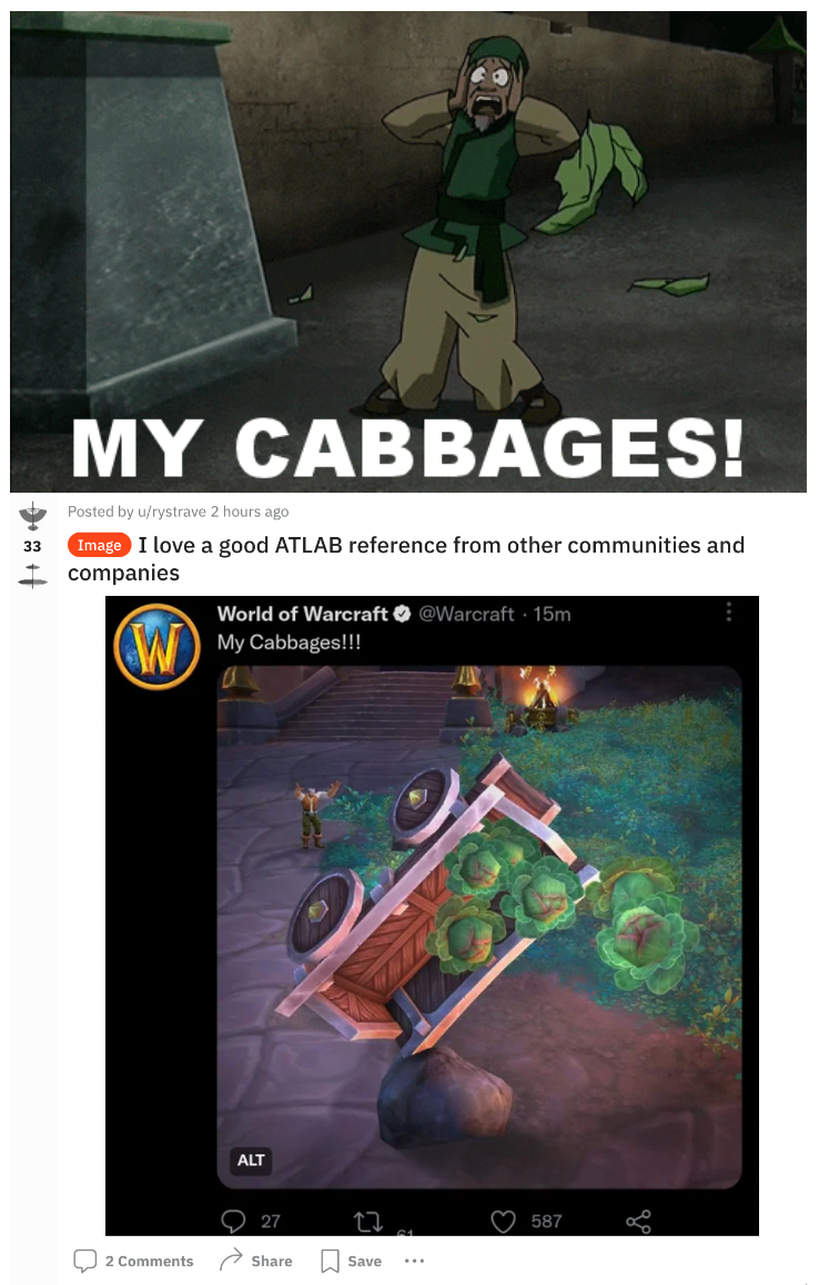 The fanbase has been able to expand the show’s inside-jokes and ideas to other platforms such as video games and more. One example of this is the classic “My Cabbages!” inside joke. Shown countless times in the series, a cabbage salesman is shown to have his cabbage collection destroyed by the work of annoying benders. A user on Reddit re-posted a picture made by the “World of Warcraft” official account showing the recreation of the scene with the caption being, “My Cabbages!”.
