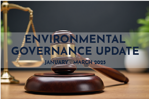 WELCOME TO THE LATEST EDITION OF THE ENVIRONMENTAL GOVERNANCE UPDATE.