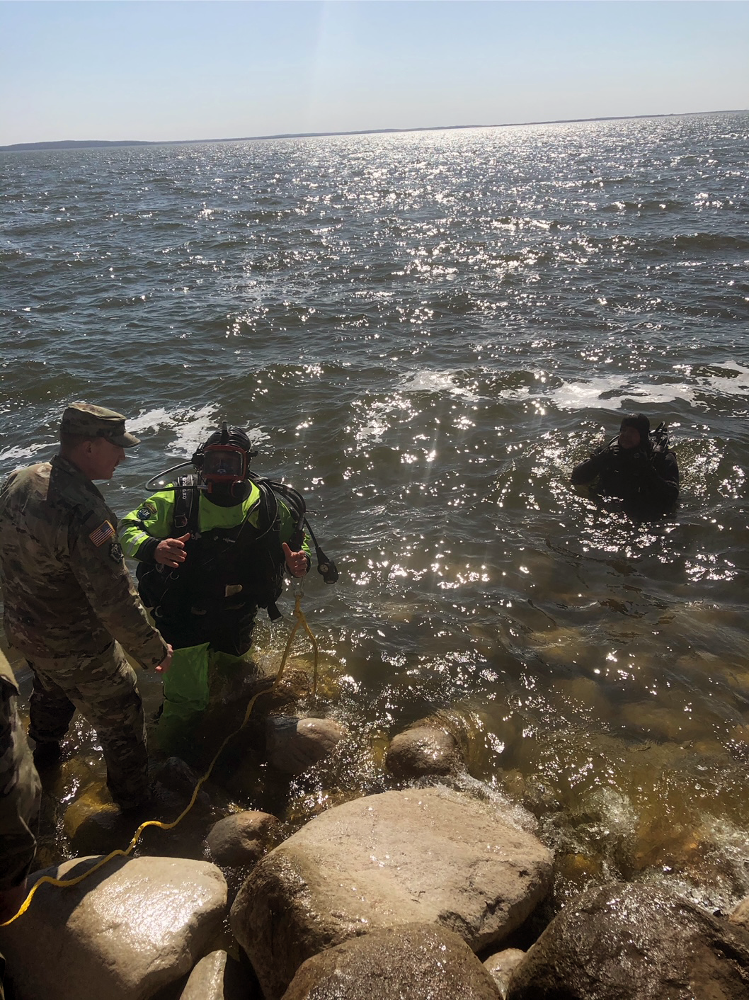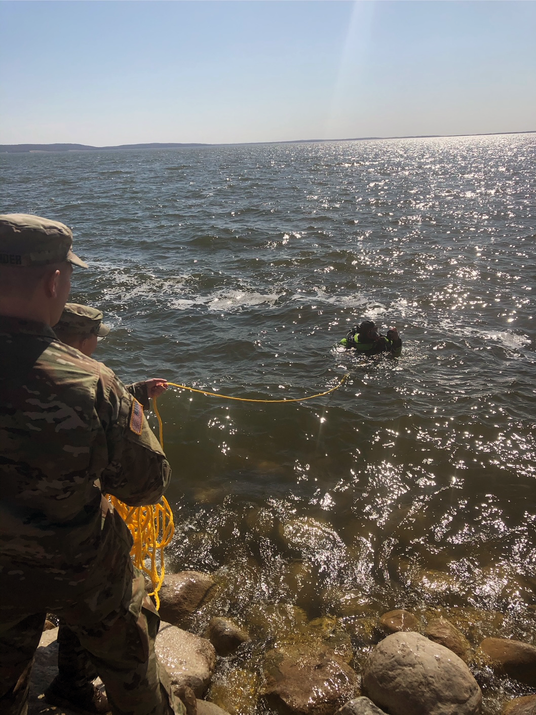 Soldiers from the 164th Regional Training Institute (RTI) conducted an underwater engineer reconnaissance in Devils Lake at Camp Grafton Training Center on April 22, 2021. (National Guard story and photos by Sgt. Ryan Sykes, 164th RTI)