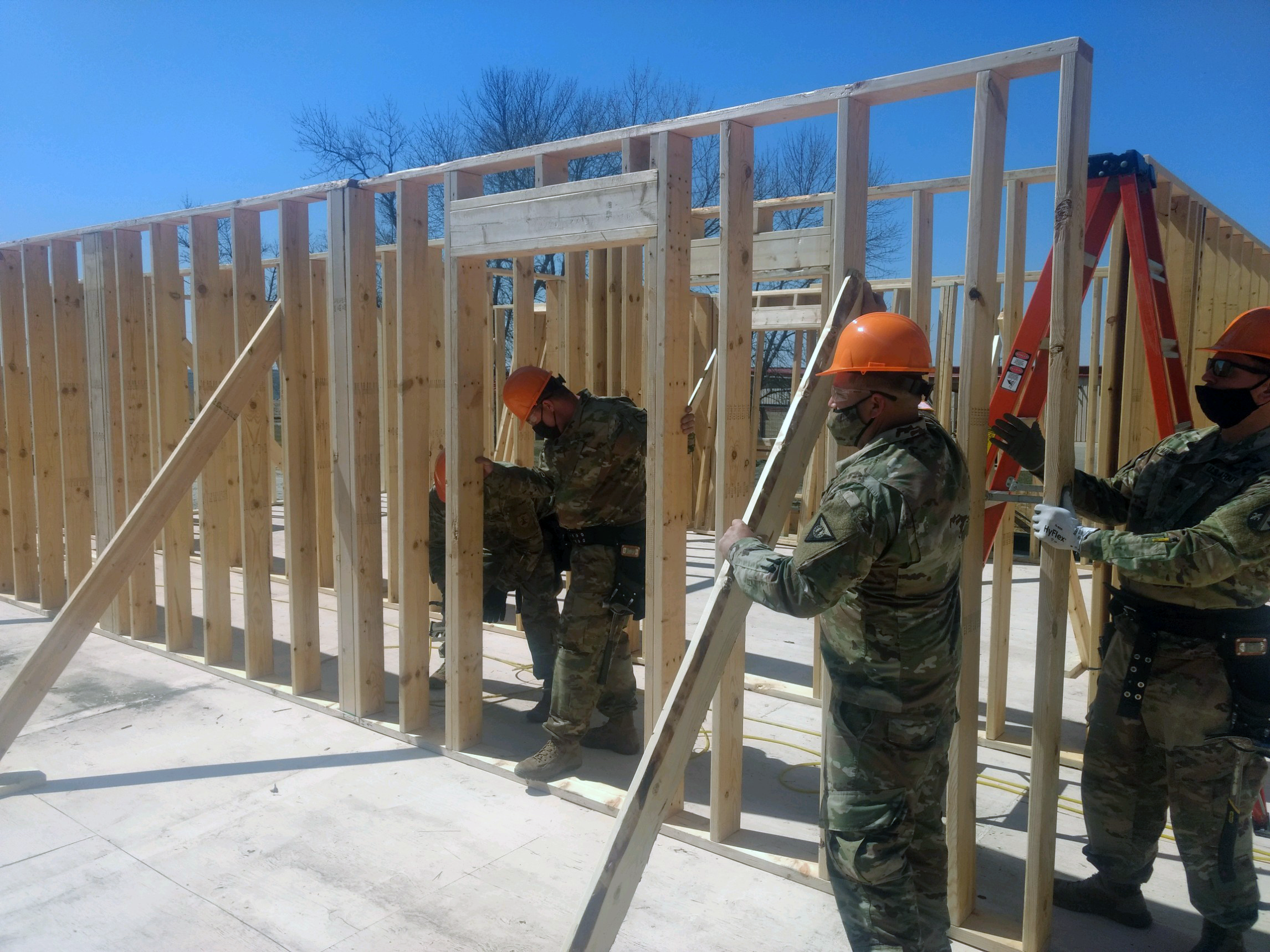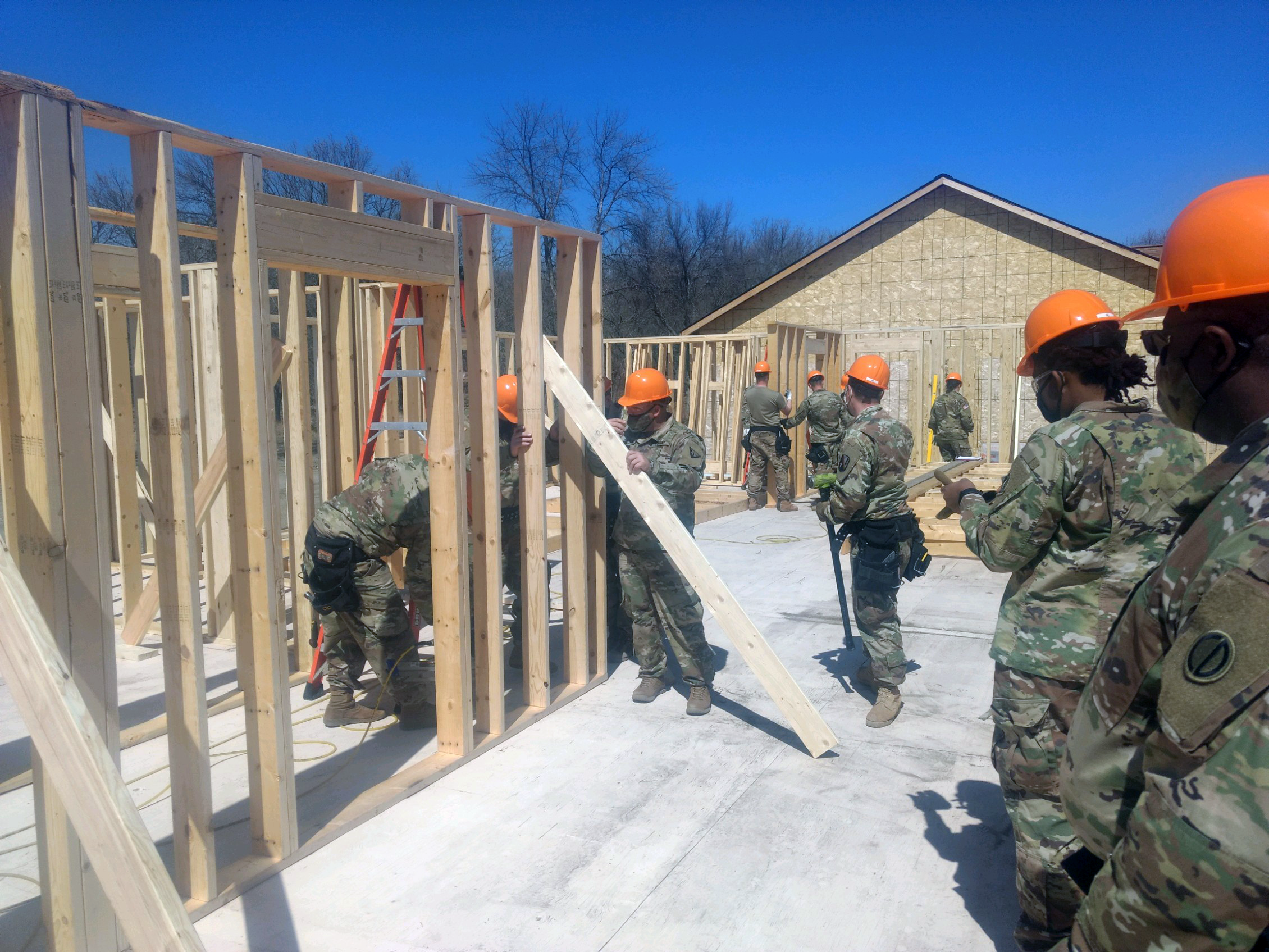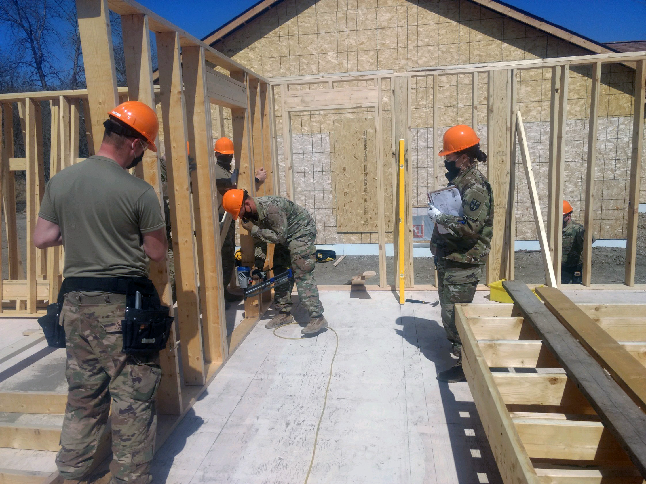 The sixteen Soldiers in the current Construction Engineer Supervisor Advanced Leaders Course (Military Occupational Specialty 12H30) at the 164th Regional Training Institute (RTI), Camp Grafton Training Center (CGTC), recently assisted in the construction of military lodging facilities at the camp. (National Guard story and photos by Sgt. 1st Class Dave Weber, 164th RTI)