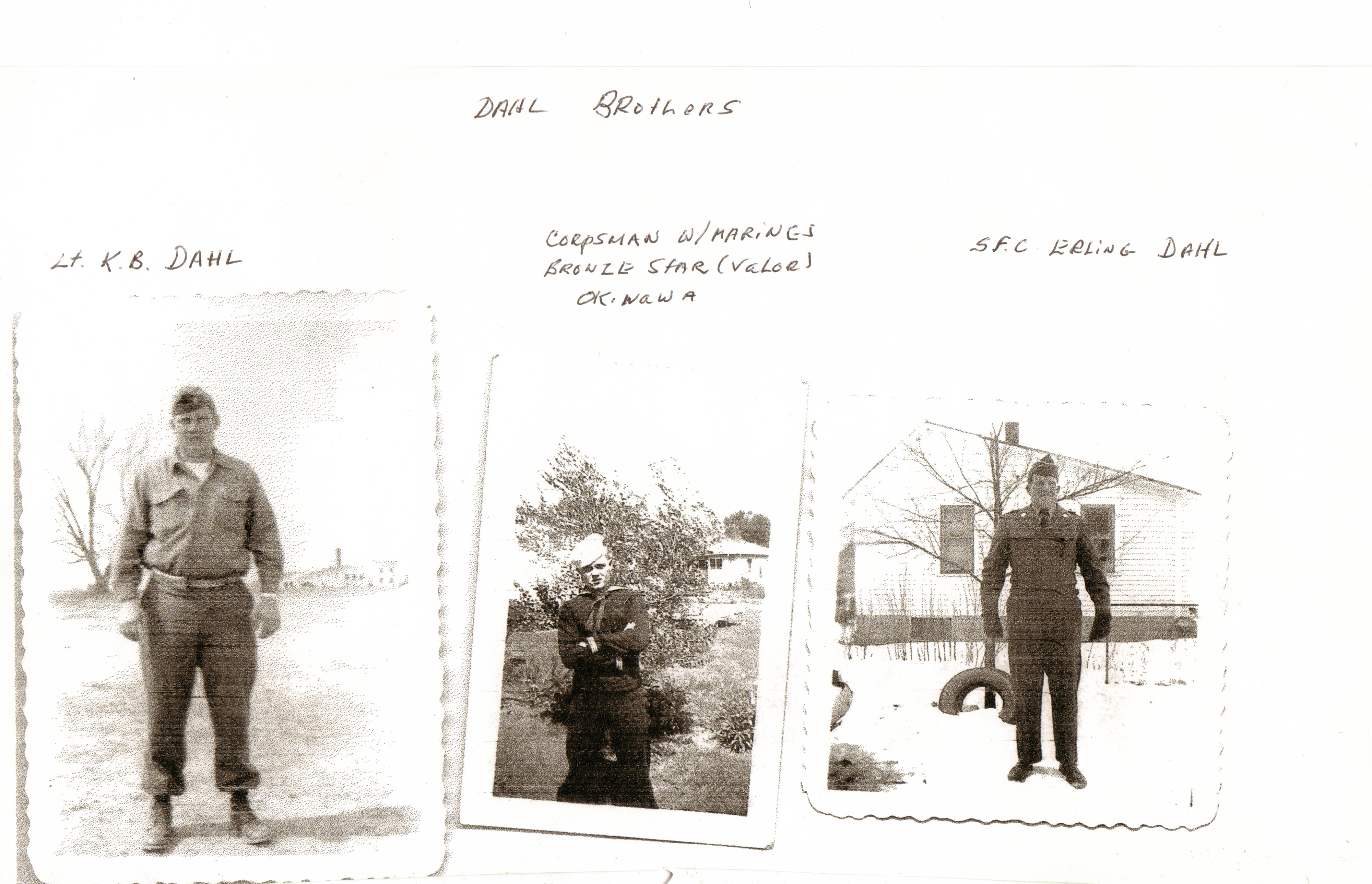 Francis E. “Frank” or “Punk” Dahl, now 90, joined Company G, 164th Infantry, Valley City, in 1949 and was sent to Fort Rucker, Alabama, along with brothers Lt. Kemet "Bud" Dahl and Sgt. Erling Dahl. Frank was a 19-year-old corporal in 1952 when he was selected for duty in Korea.