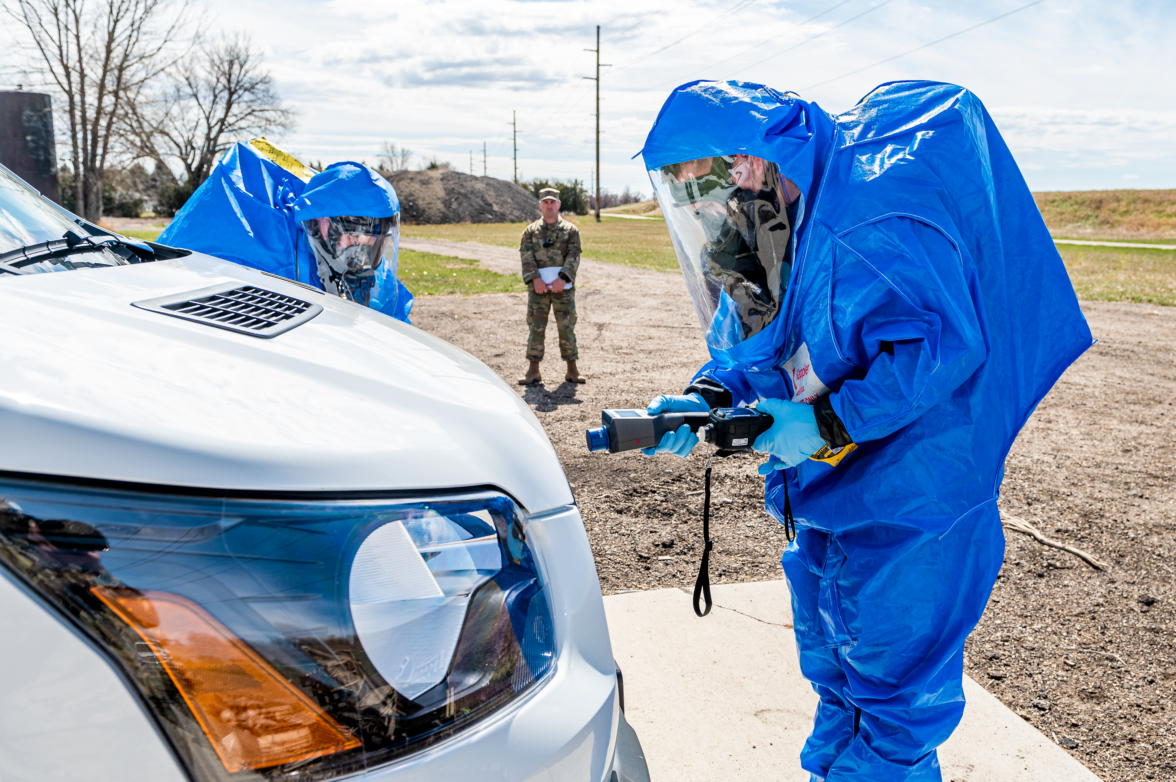 Sgt. Domonic Delaney, left, and Sgt. Travis Johnson, 81st Civil Support Team, inspect unknown substances found inside a van during a joint training exercise with the Mandan Fire Department in Mandan, April 28, 2021.