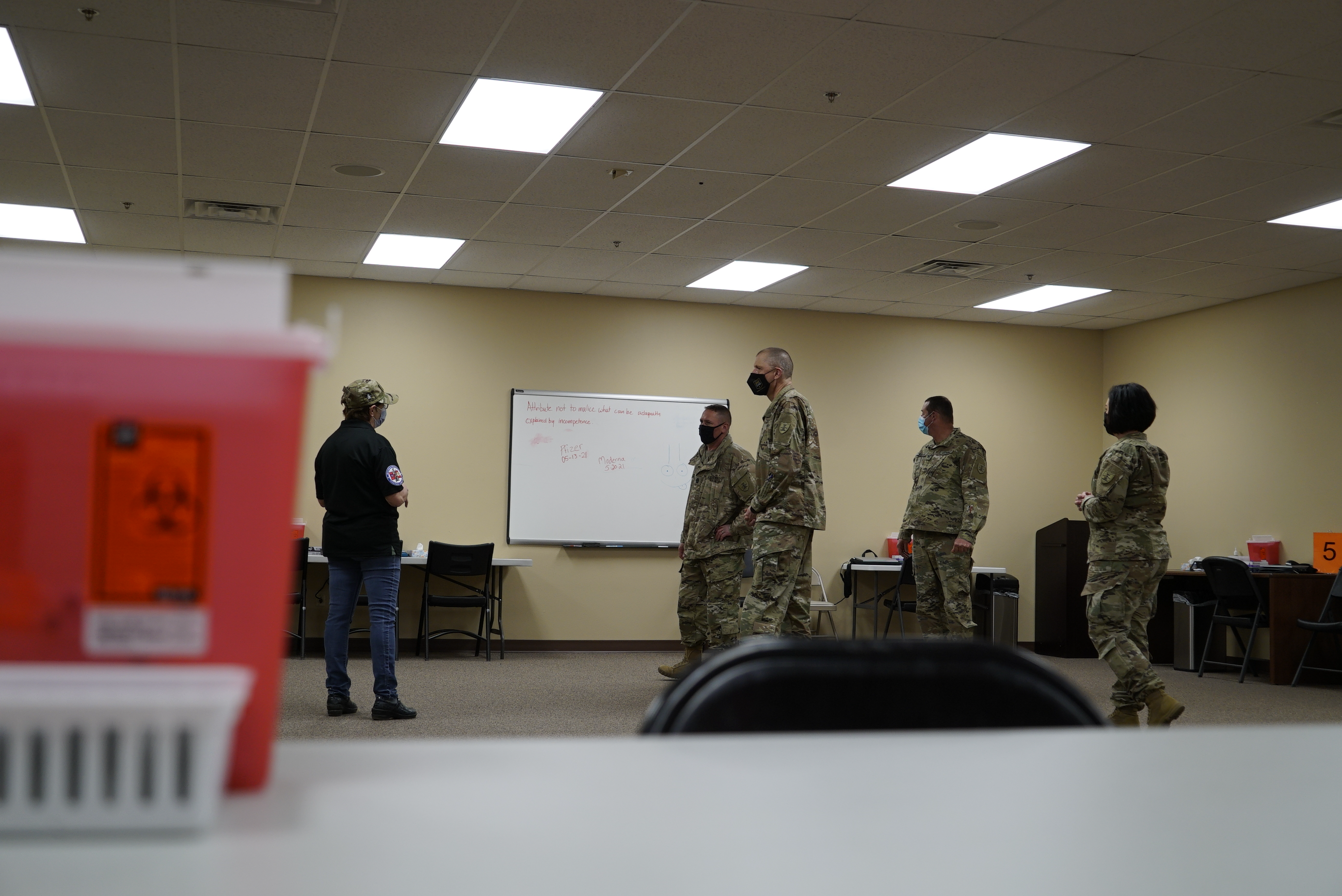 The N.D. National Guard leaders received a tour of the facilities and were briefed on the joint activities of the National Guard and the Southwest District Health Unit in support of COVID-19 response efforts.
