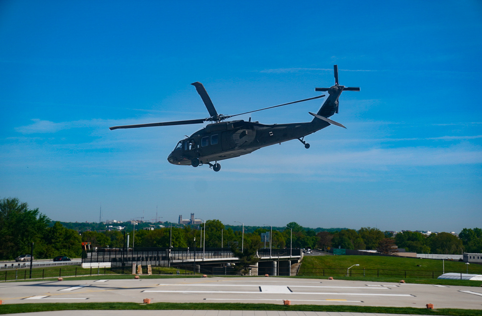 Chief Warrant Officer 3 Drew Vinchattle pilots a N.D. Army National Guard UH-60 Black Hawk helicopter near the Washington Monument during a training flight while on duty in the National Capital Region. (National Guard photo by Chief Warrant Officer 5 Kiel Skager, Joint Force Headquarters, N.D. National Guard)
