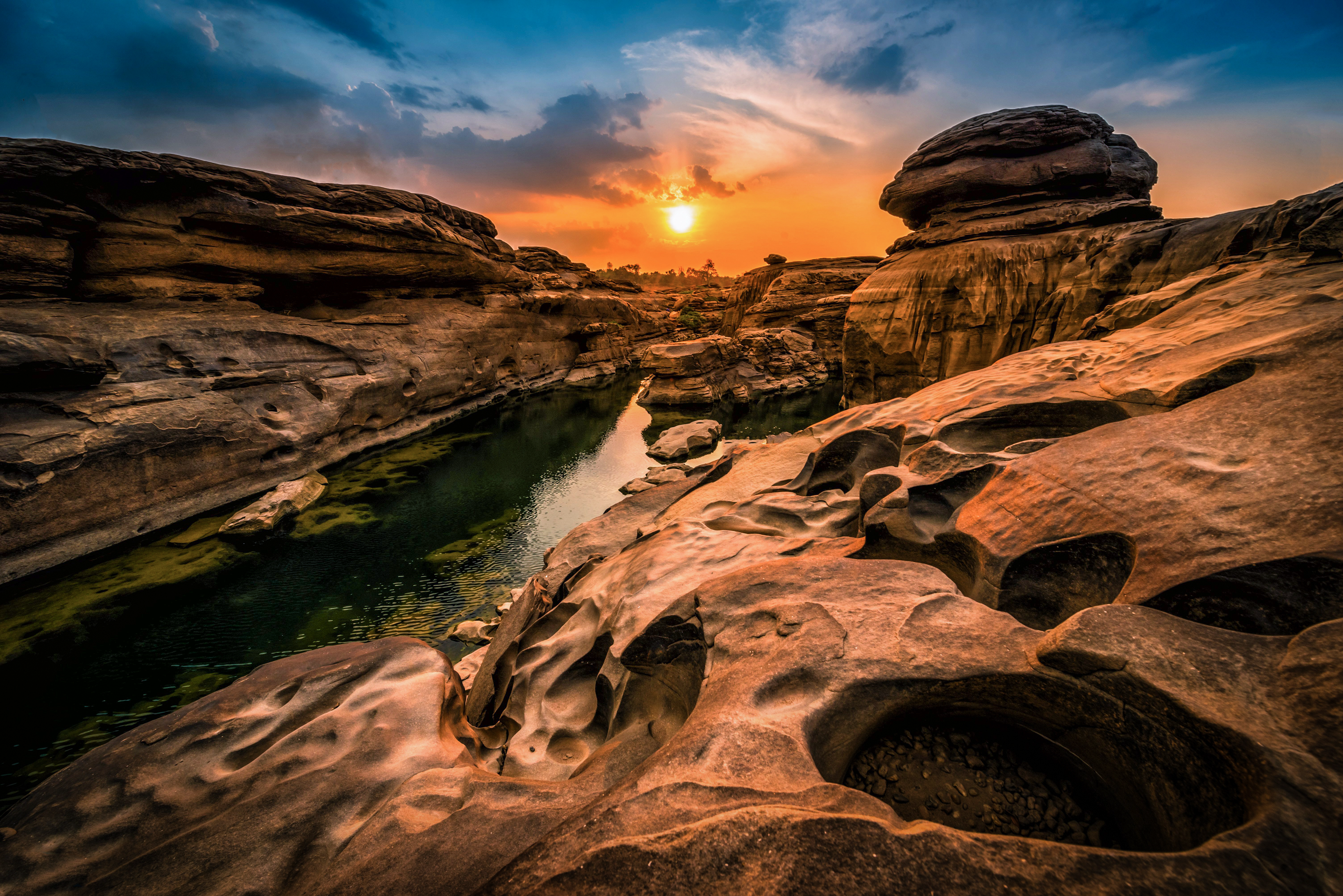 Created with images by nuttawutnuy - "Landscape of sunset at Sam Phan Bok in Ubonratchathani unseen in Thailand. The Grand Canyon of Thailand." • MNStudio - "Horseshoe Bend on Colorado River in Glen Canyon, part of Grand canyon" • phonix_a - "Grand canyon in Thailand." • Tomasz Wozniak - "The Colorado River Through the Grand Canyon, Arizona, USA." • emotionpicture - "Abstract background canyon Antelope near Page, Arizona, USA"