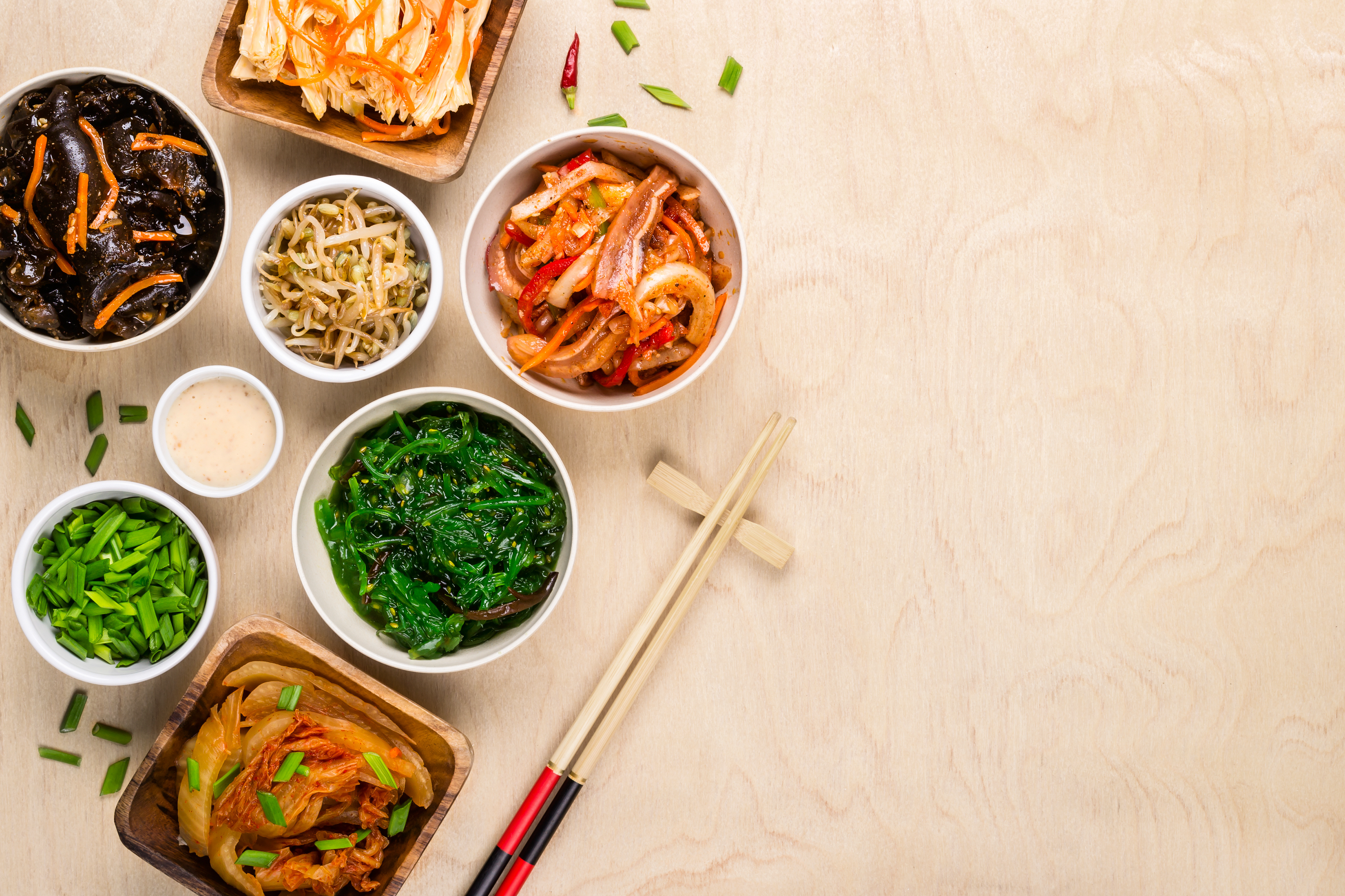 Created with an image by colnihko - "Assorted korean food and chopsticks on wooden background"