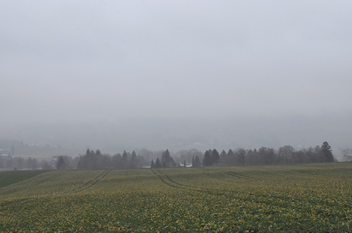 Brouillard et bruine, à peine si l'on distingue le lac de Bienne !
