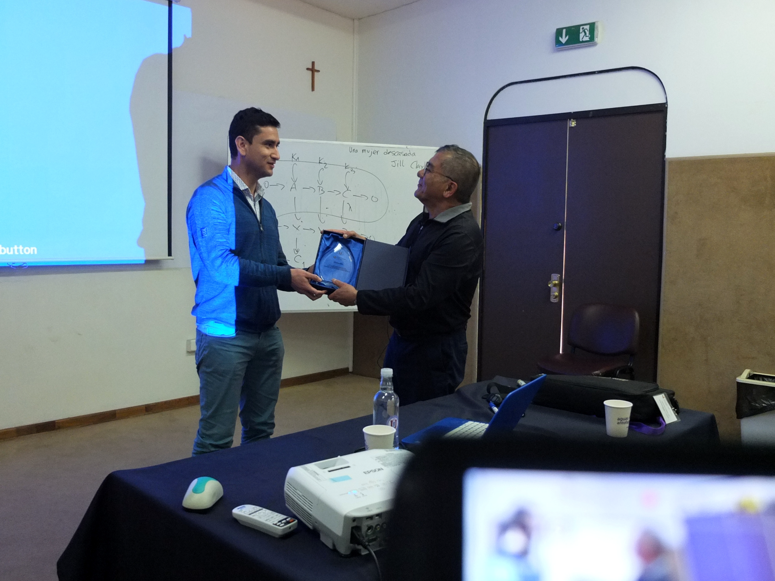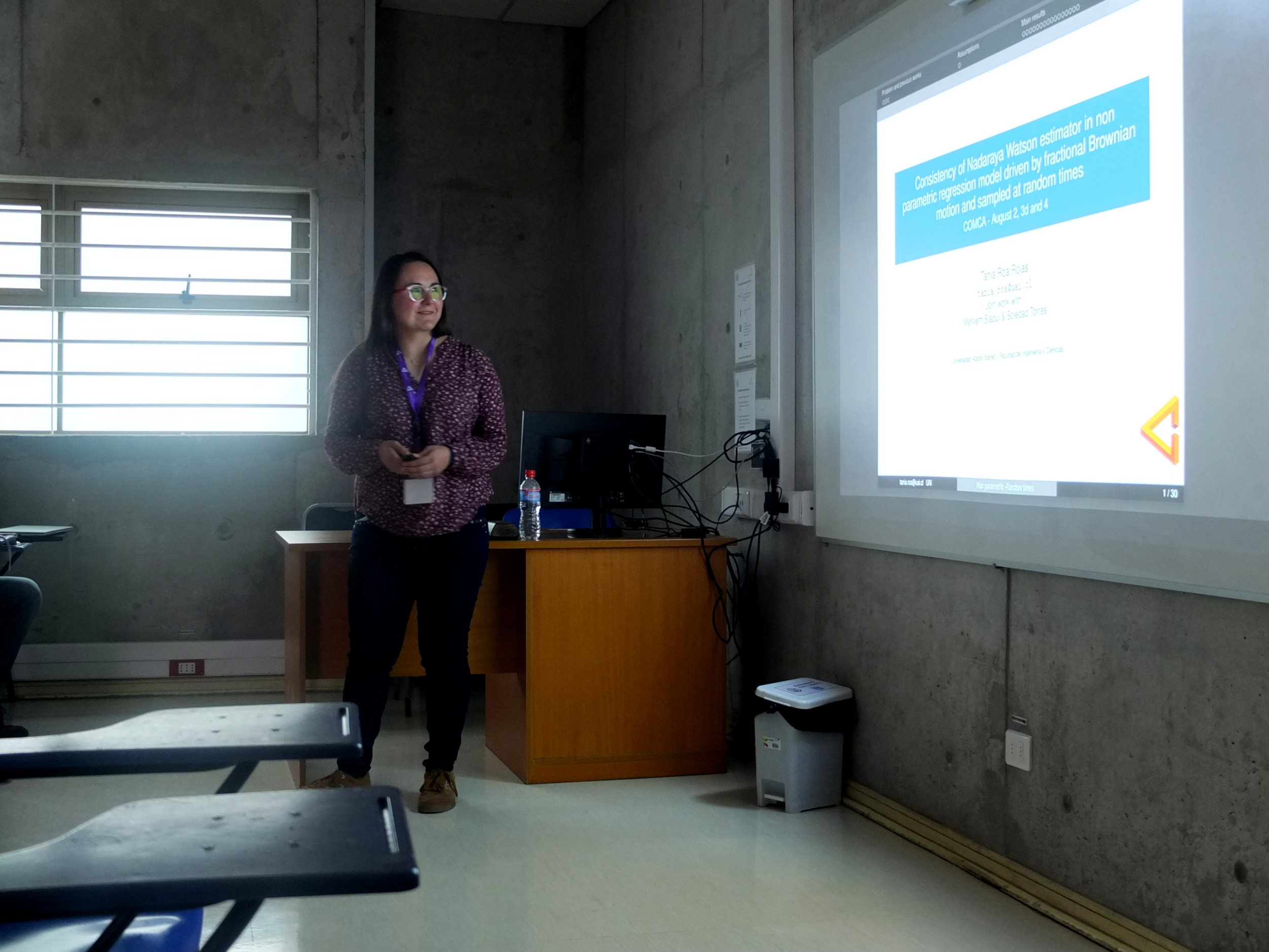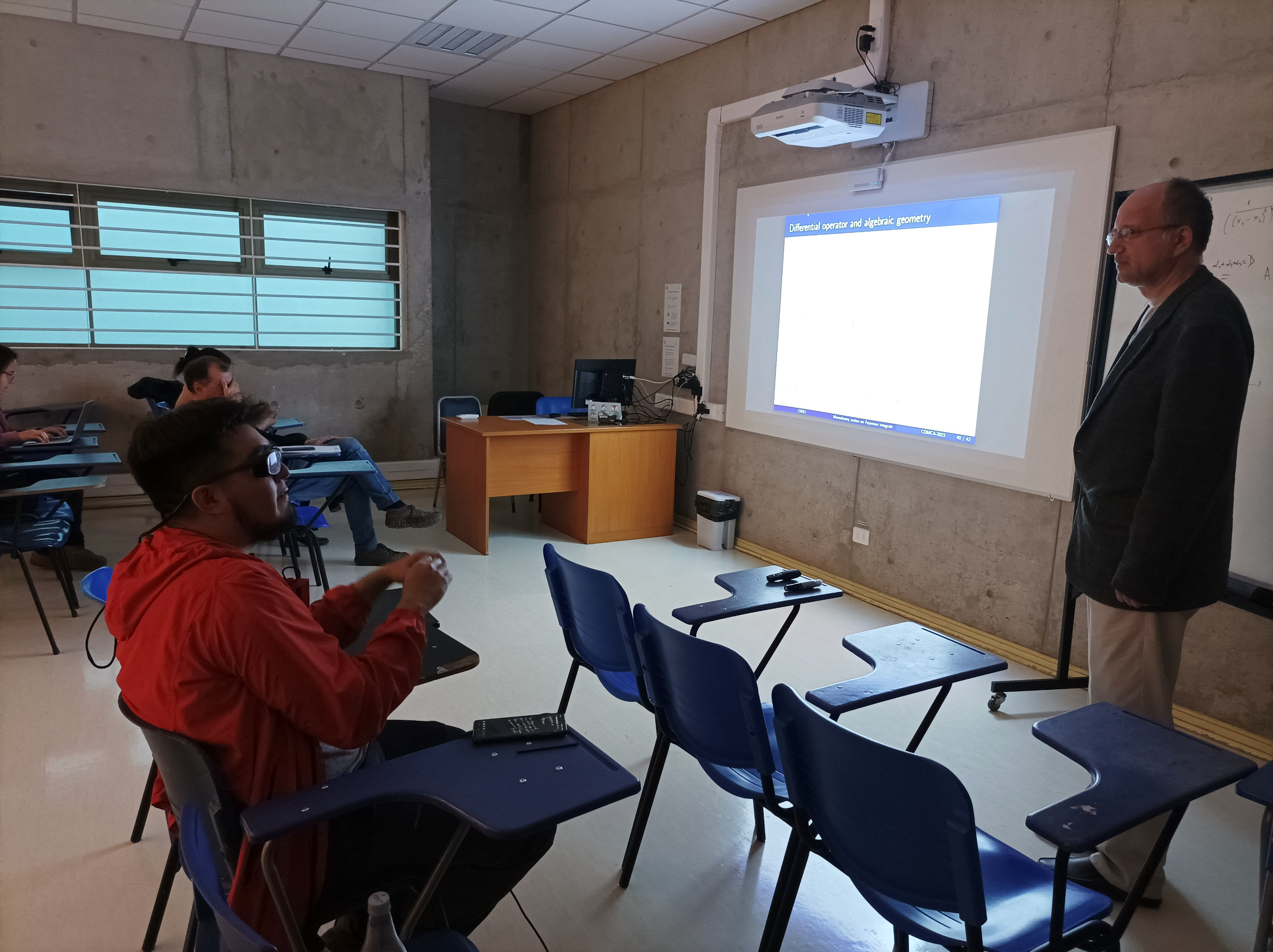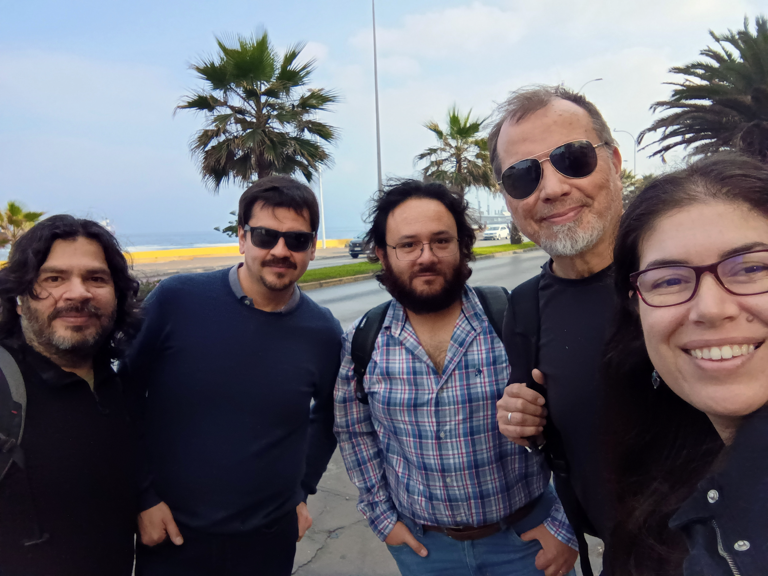 Junto a estos estudiantes de la ULS, viajó hasta Antofagasta también una nutrida delegación académica, compuesta por el Dr. Marco Corgini Videla (miembro del comité organizador y encargado de la sesión de Física Matemática y Análisis Estocástico, junto a la Dra. Soledad Torres Díaz, del CIMFAV-UV), el Dr. Cristian González Avilés (conferencista invitado), el Dr. Diego Arcis Arcis (encargado y expositor de la sesión de Álgebra, Geometría y Teoría de Nudos, junto al Dr. José Ayala Hofmann, de la UTA), el Dr. Rodrigo Véjar Asem (encargado de la sesión de Análisis Numérico de Ecuaciones Diferenciales Parciales), el Dr. Aldo Pereira Solís (expositor de la sesión de Física Matemática y Análisis Estocástico), y el Dr. Héctor Moreno Barrera. De manera remota, formaron parte del evento los Dres. Milton Espinoza Espinoza y Justino Sánchez Cubillos, como miembros del comité científico, y el Dr. Héctor Torres Apablaza, como co-encargado de la sesión de sesión de Análisis Numérico de Ecuaciones Diferenciales Parciales.