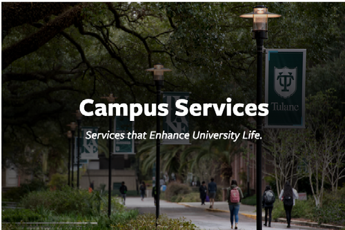 Campus Services is here to help. If you have any questions about our services or other university services, feel free to reach out. Email us at campusservices@tulane.edu, or call (504) 865-5441. You can also visit us in-person: